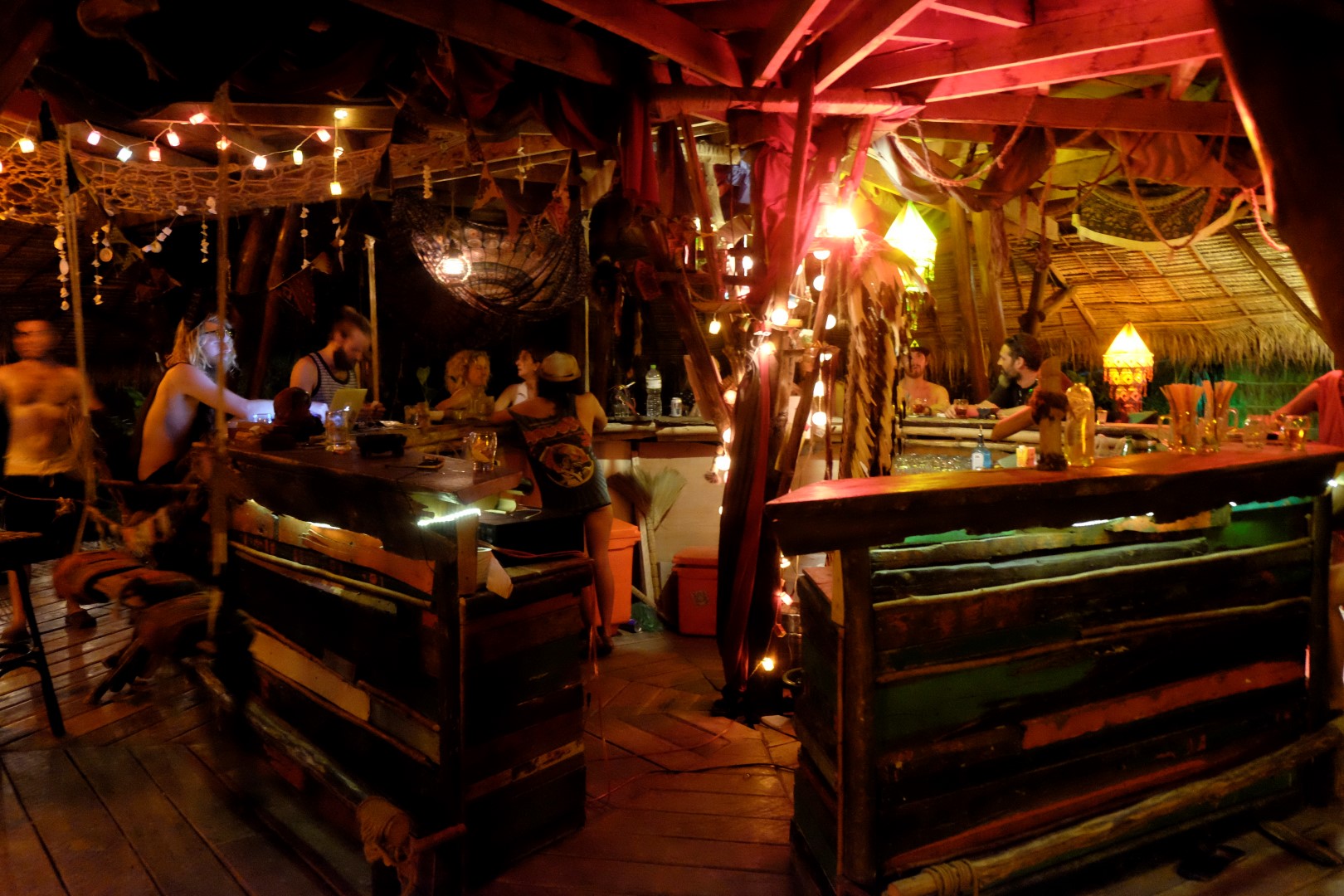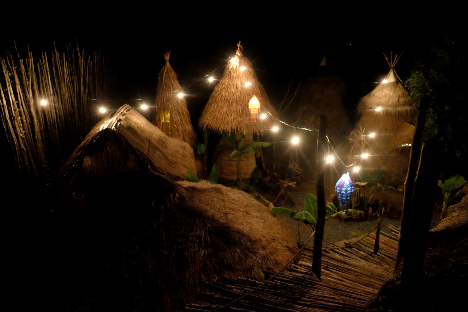 Arī nākamā vieta mani atstāj ar vaļā muti – tā ir “Neverland”, ko būvējuši brīvprātīgie arhitekti. Ja man būtu jāiztēlojas pasaku zeme, tā būtu tieši šāda. Nelielā teritorijā sabūvēti rūķu namiņi ar palmu zaru jumtiem, visur sakārtas laternu virtenes. Uz centrālā bungalo otro stāvu ved zaru tilts, augšstāva griestus rotā krāsainas audumu strēles. Patiešām skaisti!
