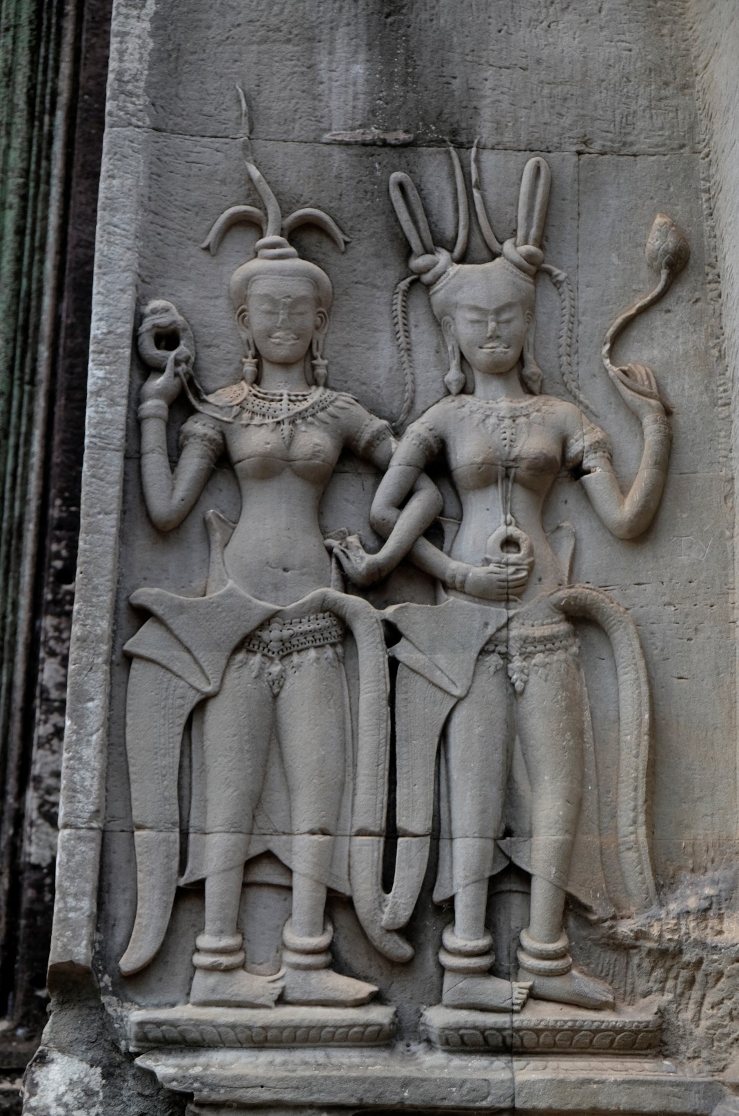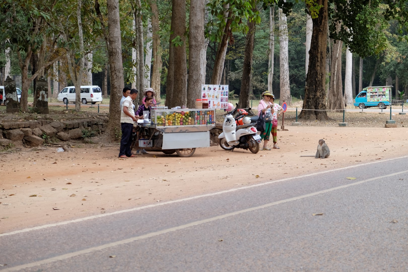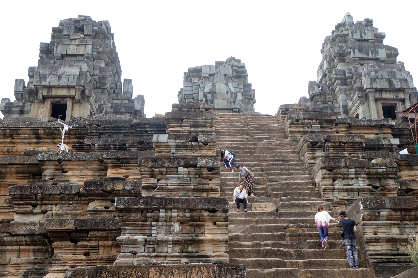 Szabolcs ir laipni piekritis mani paķert līdzi uz motorollera – lētāk, jautrāk un lielāka pārvietošanās brīvība. Mazliet noķēpājamies, kamēr atrodam biļešu iegādes punktu – tumsā viss izskatās citādāk. Kad piebraucam pie Ankorvata, gaisma jau ir aususi un esam nokavējuši galveno burziņu pie ūdens klajiem. Tūristus jau laiž iekšā, vedu ceļabiedru pa iemītām takām, šī ir mana trešā Ankorvata vizīte. Brīdi klīstam kopā, bet pa stāvajām kāpnēm, kas ved uz pašu augšējo platformu, atsakos kāpt. Būšu pie tempļa “sētas” ieejas, satiekamies vēlāk.