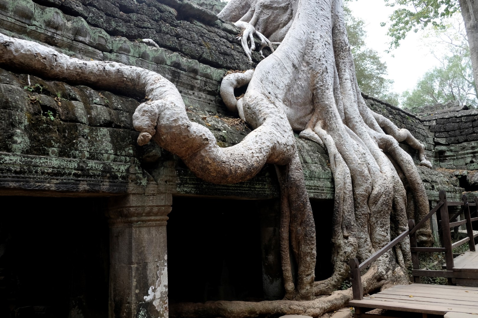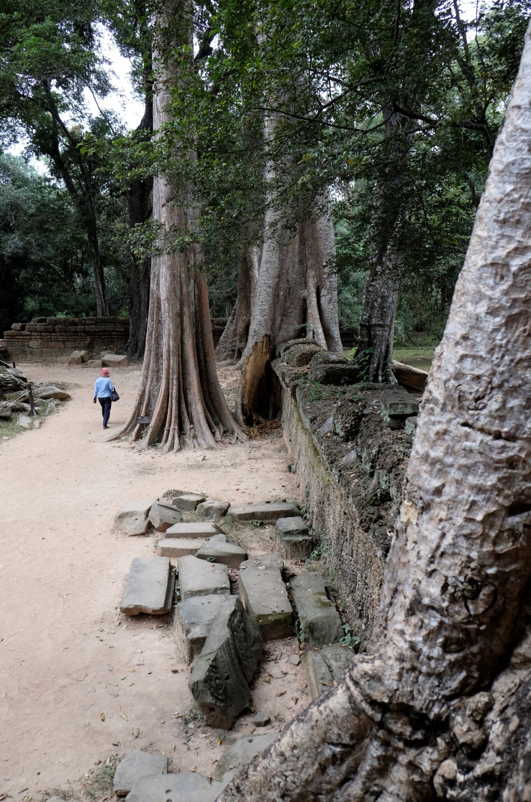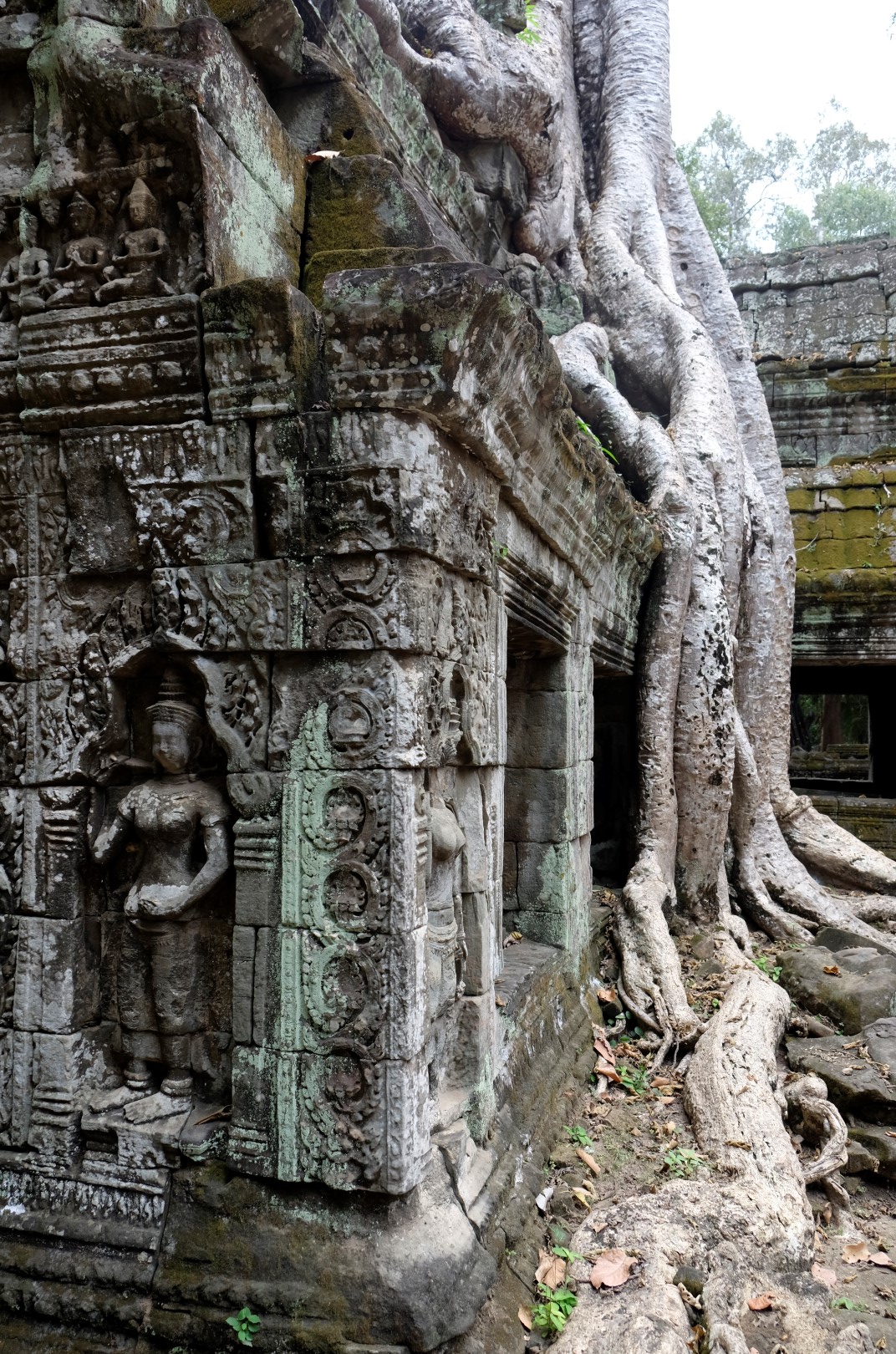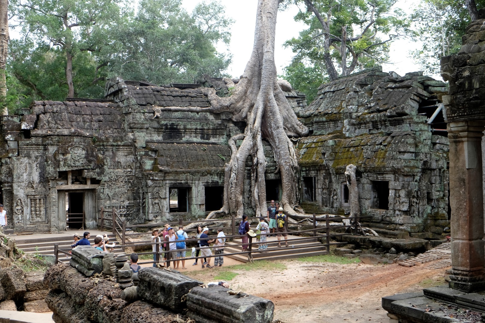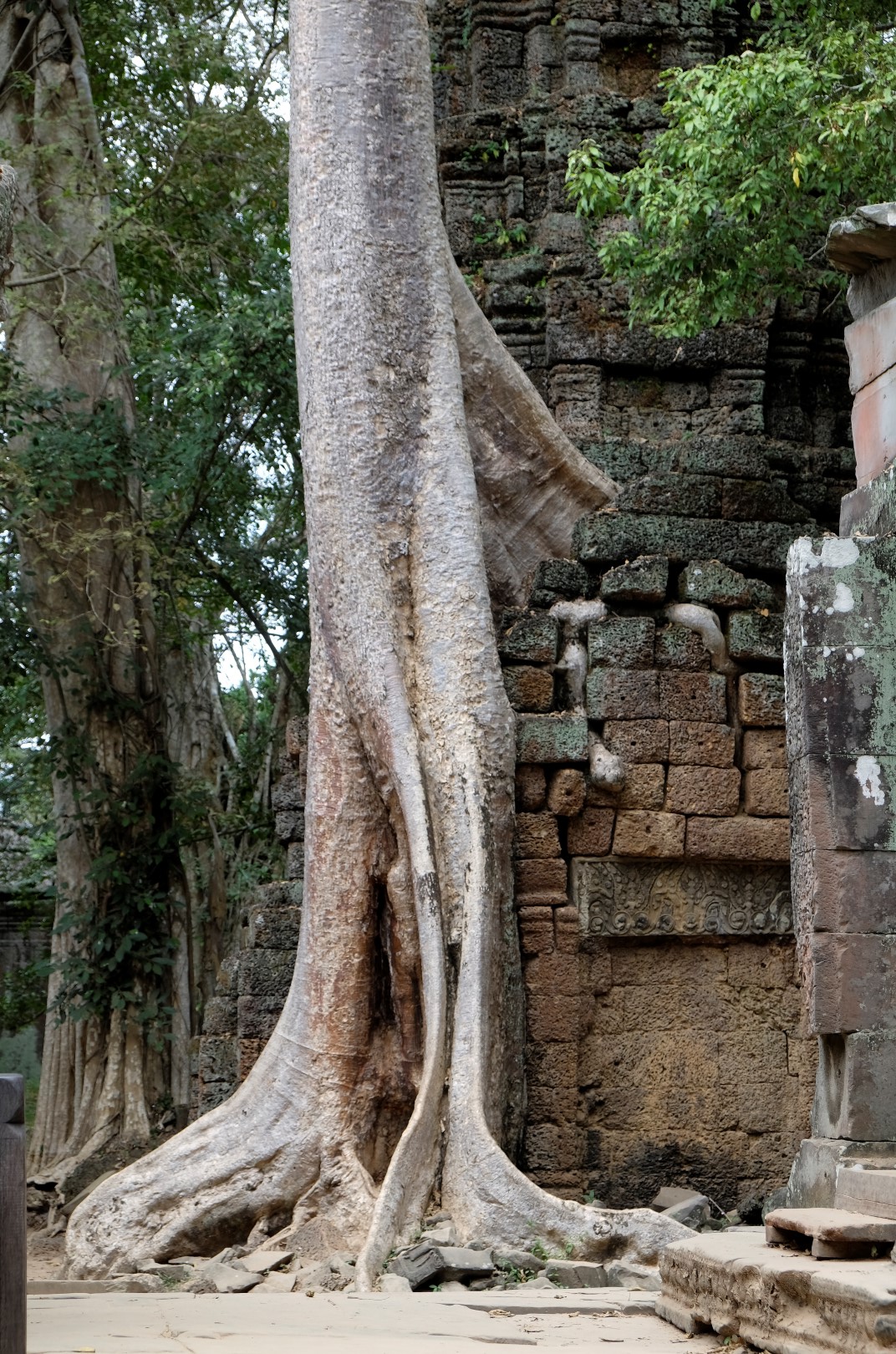Preah Khan sagaida tikpat glīts kā iepriekšējā reizē, arī mazie tempļi ir mīlīgi, cilvēku daudzums – paciešams. Ar zināmām bažām tuvojos Ta Prohm – templim ar milzu kokiem. Protams, cilvēku netrūkst, bet šodienas blīvums nav ne tuvu pielīdzināms manai iepriekšējai reizei, kad aiz ķīniešiem kokus neredzēja. Tagad man šī vieta tīri labi iet pie sirds, arī ceļabiedrs priecājas par iespaidīgajiem koku un mūru musturiem. Līdzīga situācija ir pēdējā, Bayon templī, kur tagad var vairāk koncentrēties uz akmens, nevis ķīniešu sejām.