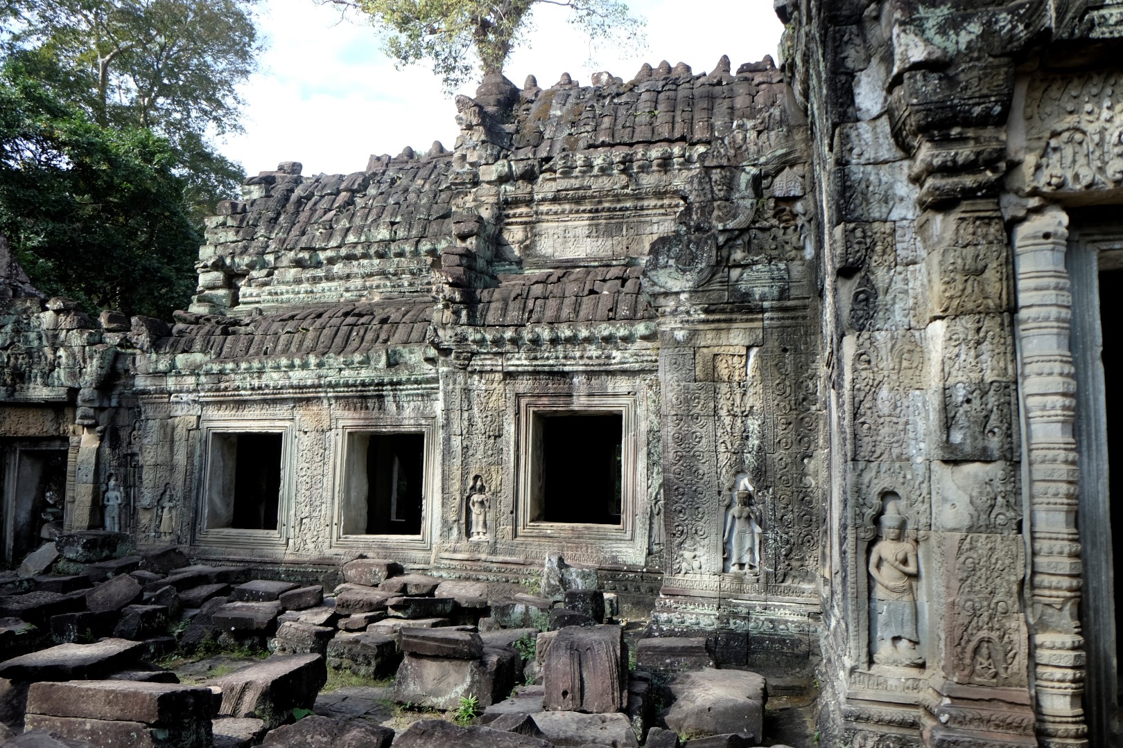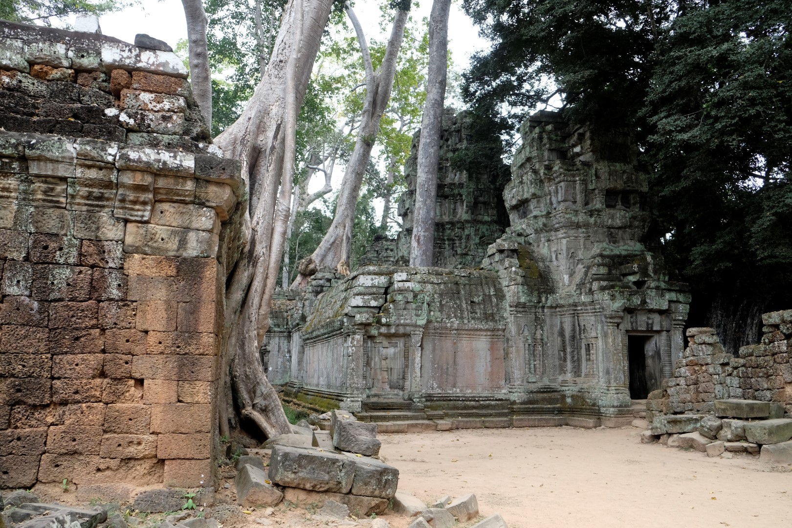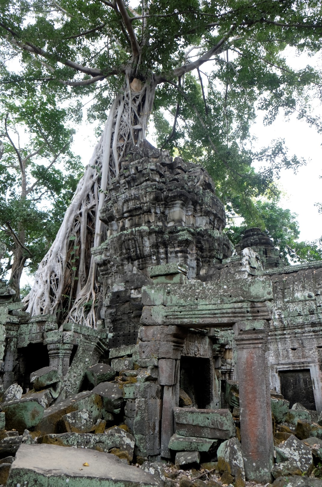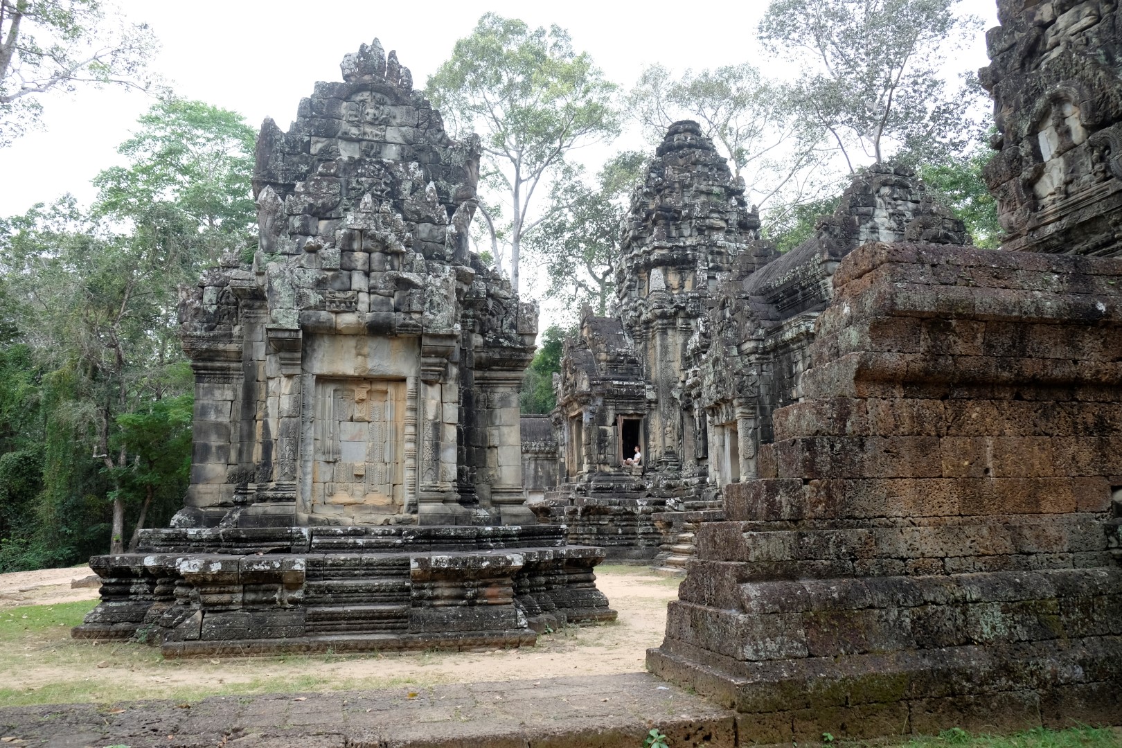 Preah Khan sagaida tikpat glīts kā iepriekšējā reizē, arī mazie tempļi ir mīlīgi, cilvēku daudzums – paciešams. Ar zināmām bažām tuvojos Ta Prohm – templim ar milzu kokiem. Protams, cilvēku netrūkst, bet šodienas blīvums nav ne tuvu pielīdzināms manai iepriekšējai reizei, kad aiz ķīniešiem kokus neredzēja. Tagad man šī vieta tīri labi iet pie sirds, arī ceļabiedrs priecājas par iespaidīgajiem koku un mūru musturiem. Līdzīga situācija ir pēdējā, Bayon templī, kur tagad var vairāk koncentrēties uz akmens, nevis ķīniešu sejām.