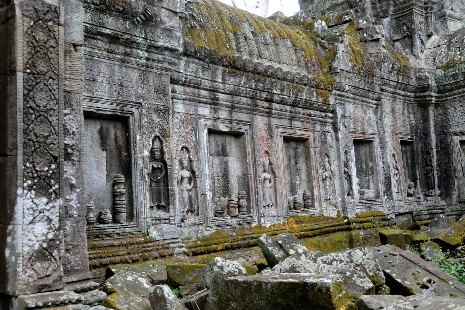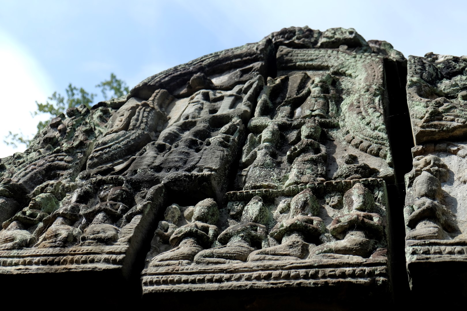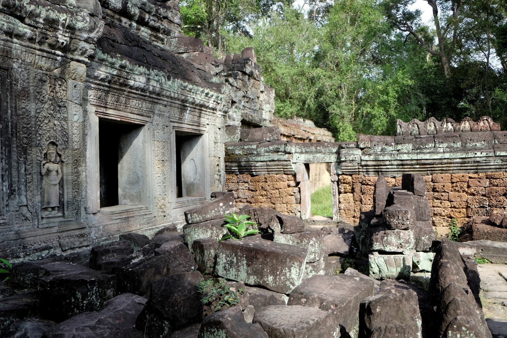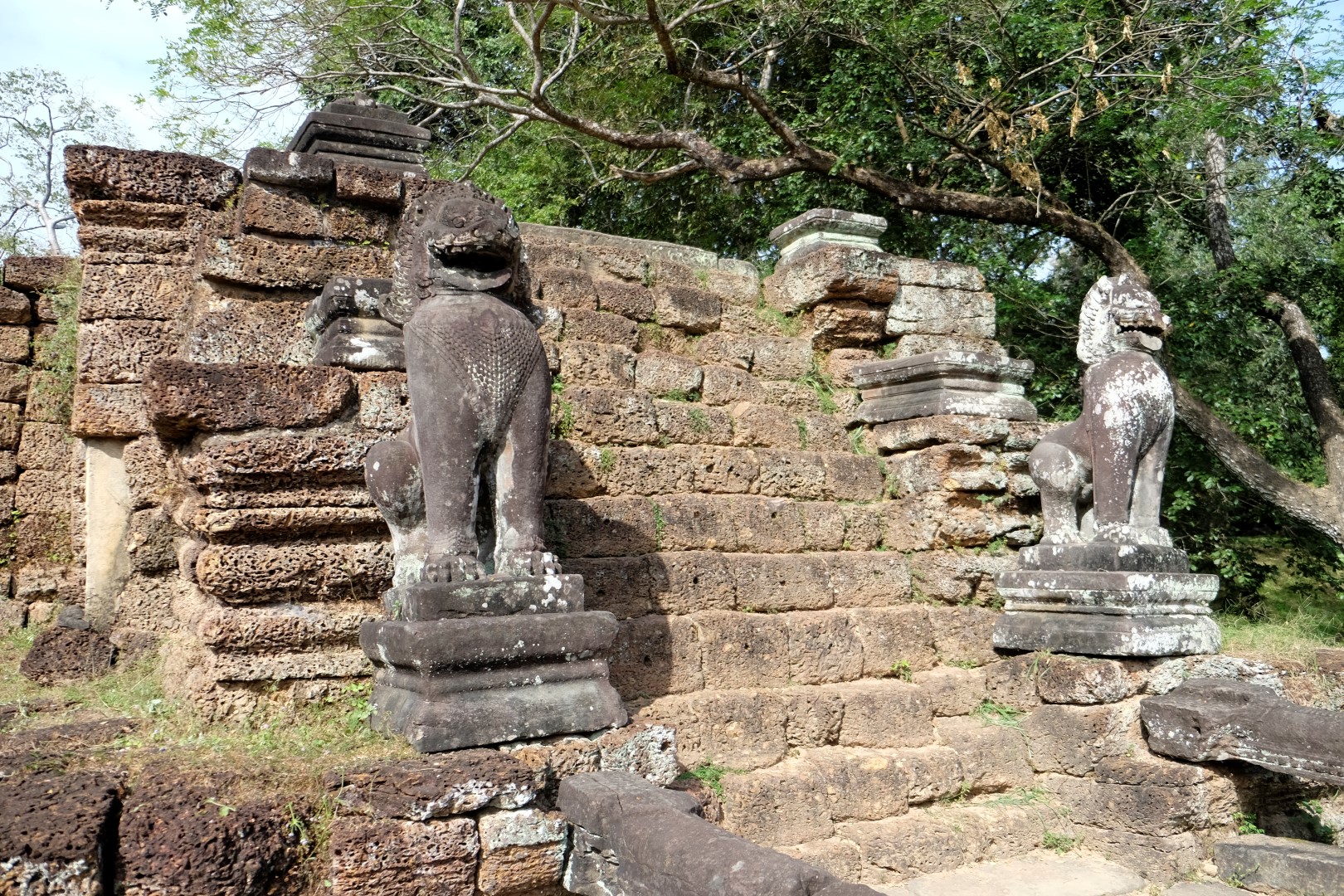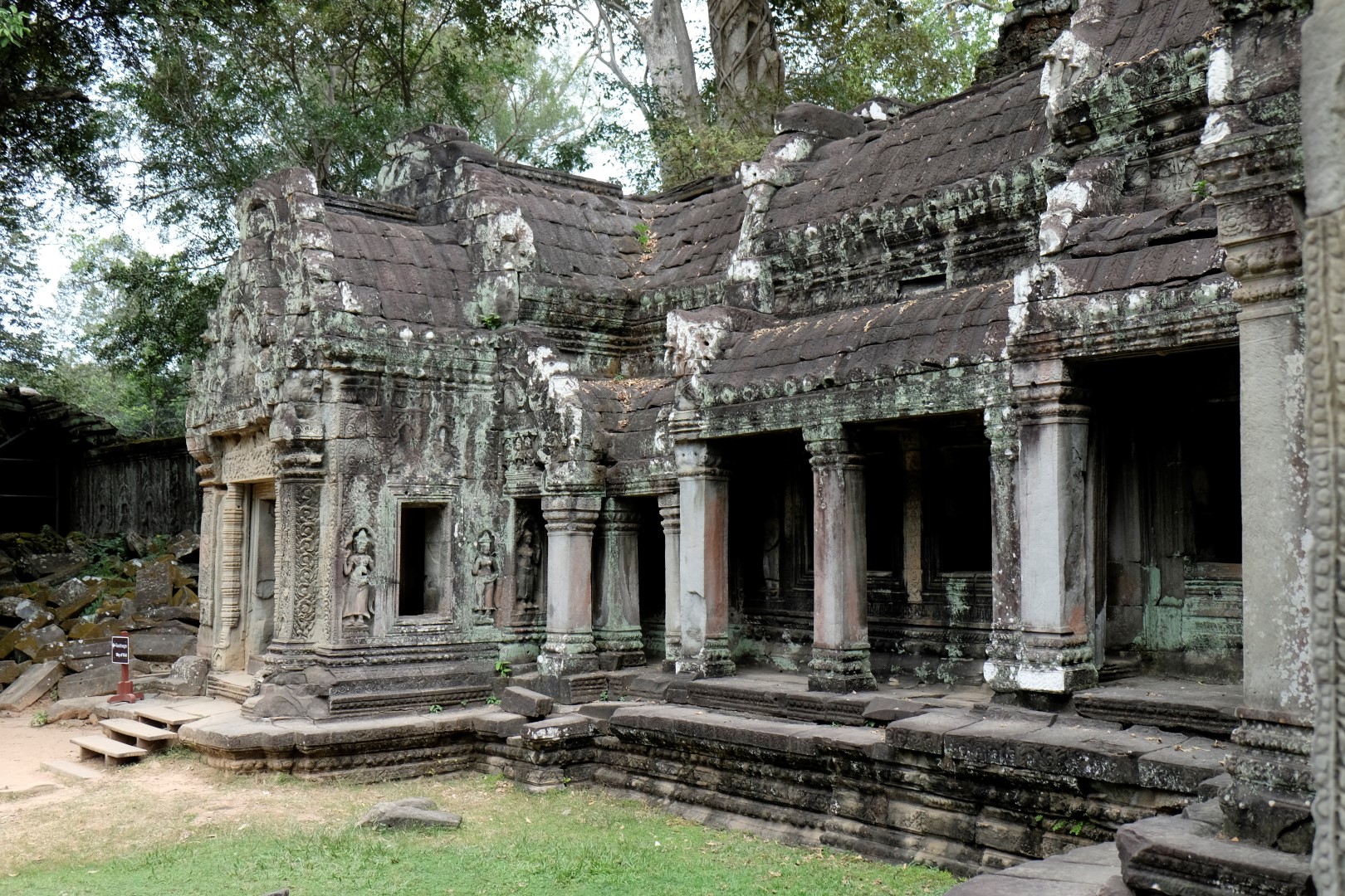 Preah Khan sagaida tikpat glīts kā iepriekšējā reizē, arī mazie tempļi ir mīlīgi, cilvēku daudzums – paciešams. Ar zināmām bažām tuvojos Ta Prohm – templim ar milzu kokiem. Protams, cilvēku netrūkst, bet šodienas blīvums nav ne tuvu pielīdzināms manai iepriekšējai reizei, kad aiz ķīniešiem kokus neredzēja. Tagad man šī vieta tīri labi iet pie sirds, arī ceļabiedrs priecājas par iespaidīgajiem koku un mūru musturiem. Līdzīga situācija ir pēdējā, Bayon templī, kur tagad var vairāk koncentrēties uz akmens, nevis ķīniešu sejām.