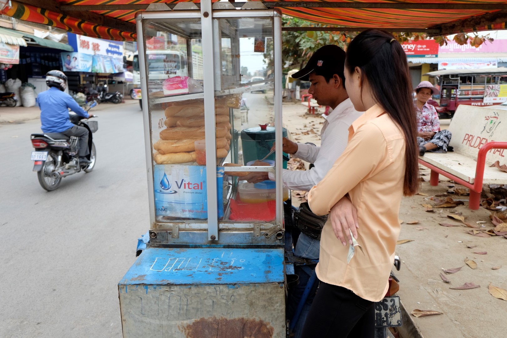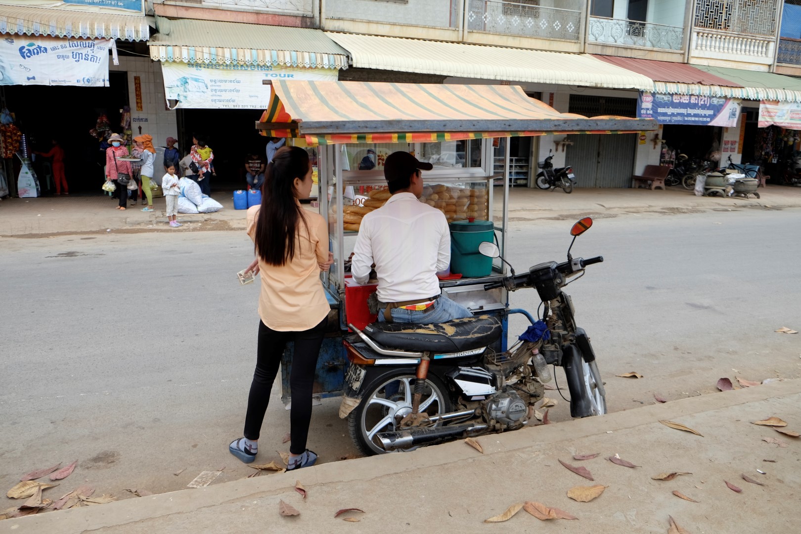 Ir jocīgi doties prom no vietas, kurā esi pavadījis salīdzinoši ilgu laiku – pazīstama katra tirgus peļķe un bodīte pa ceļam. Sieviete, no kuras ik dienu iegādājos ūdeni, beigās bez prasīšanas sniedza man ierasto pirkumu. Viena no autobusu stacijām ir pārsimts metru attālumā, no tās par 4,50 USD var aizbraukt uz manu nākamo galamērķi – Battambang.
