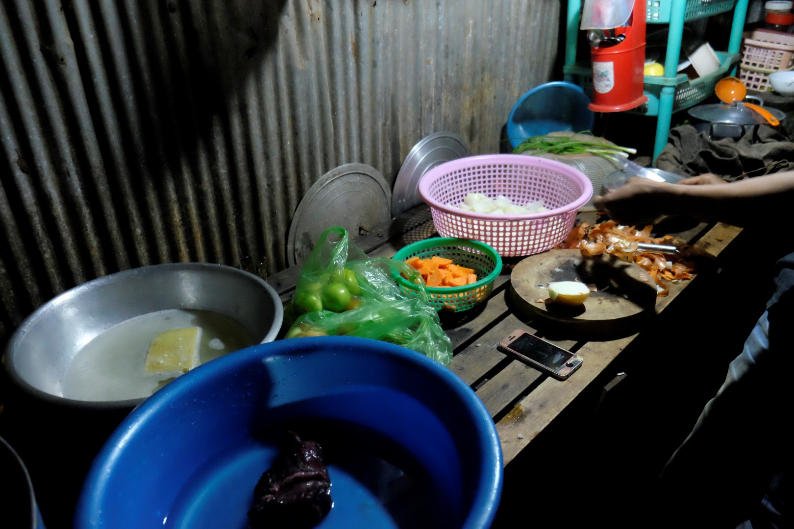Ok. Pirmo reizi visa brauciena laikā esmu norezervējusi privātu istabu, gribējās mazliet vienpatības. Izrādās, esmu izvēlējusies istabu vietējā mājā, kur aiz sienas, kuru tēlo pāris deķi, dzīvo pārējā saime, arī pārējās tūristu istabas ir tepat “aiz deķa”. Ūdens sistēma ir taziks ar aukstu ūdeni.