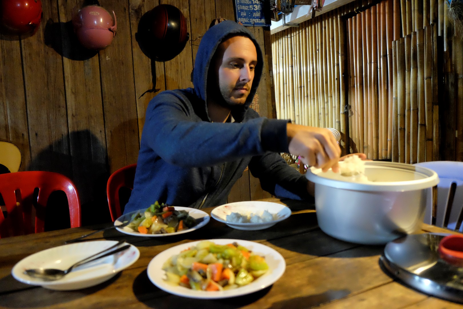 Kolīdz tā nodomāju, dzīve atkal nostājas vietās. Saimnieks paņem ģitāru un uzlaiž pāris vietējos gabalus, viens no vietējiem skatās manī kā iemīlējies, sieva atnes kūpošu rīsu bļodu un dārzeņus. Viss ir labi.