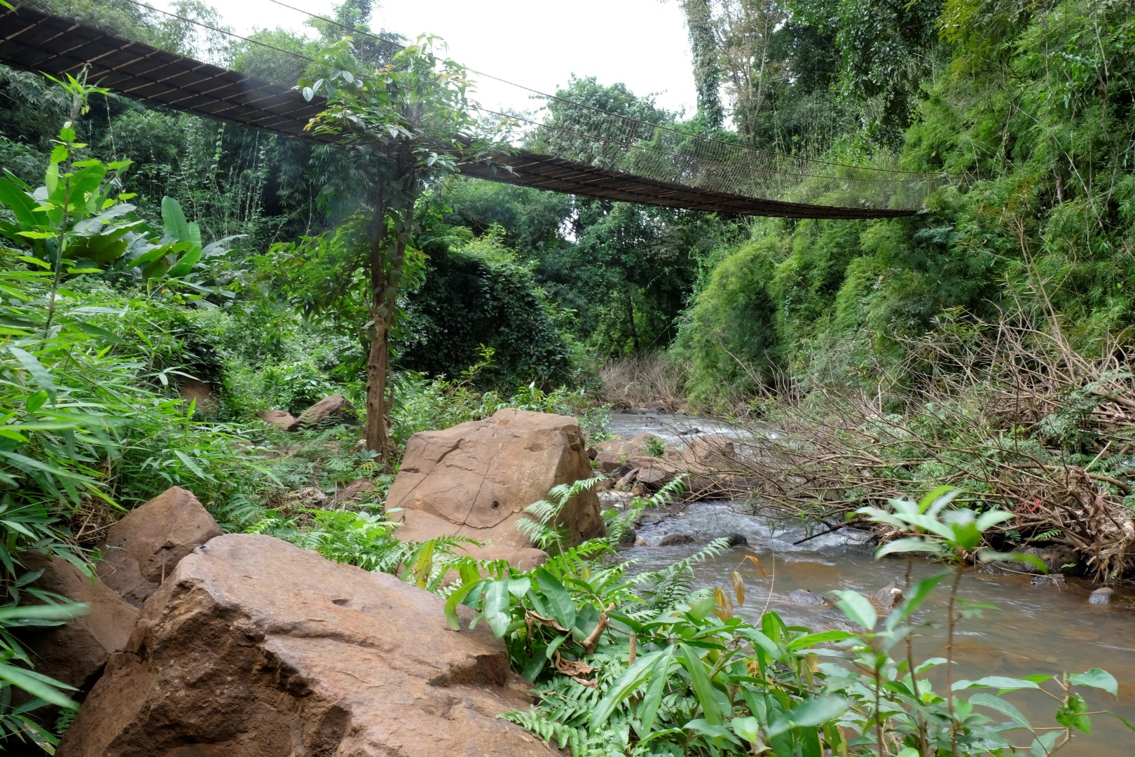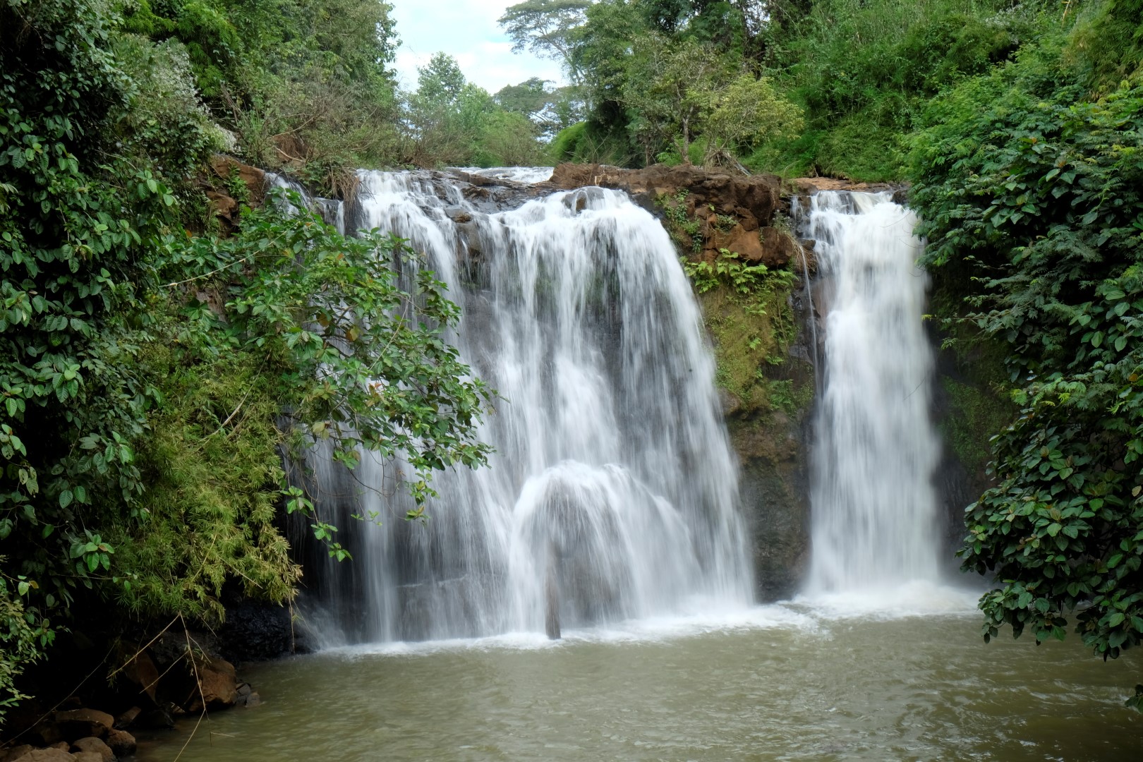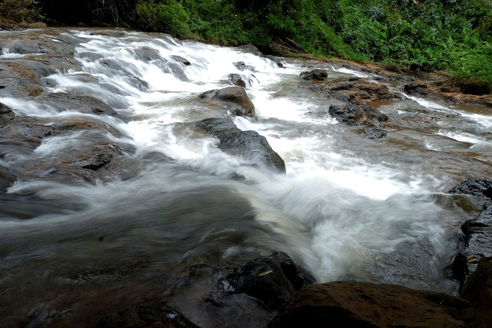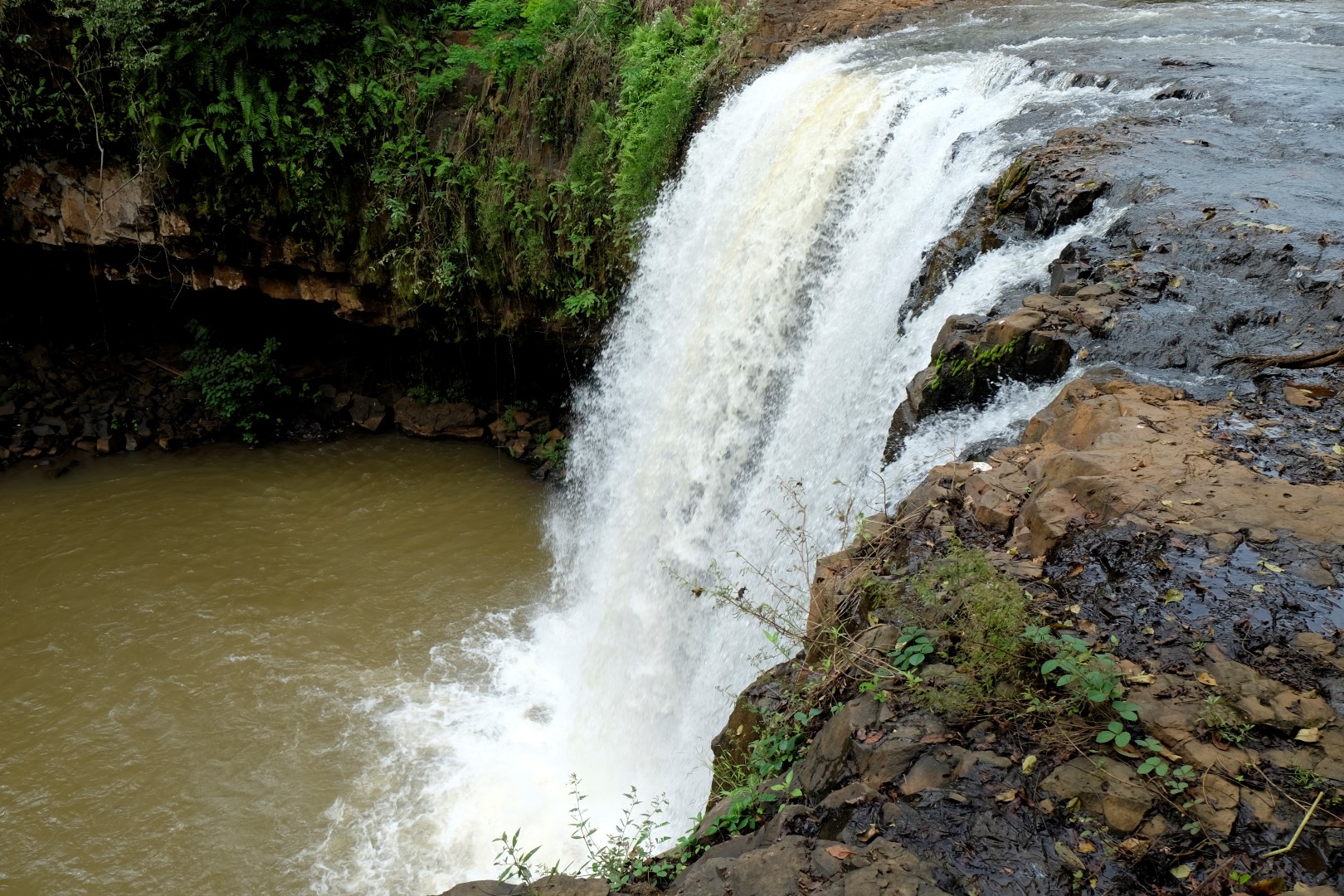 Paēdusi sēžos uz riteņa un laižu skatīties ūdenskritumus. Vienā no Agneses komentāriem paustajam brīdinājumam ir pamats – apkārt virmo tādi putekļu mākoņi, jo īpaši pēc smagajiem – nav ko elpot. Kad tieku prom no lielā ceļa, kļūst labāk. Ceļa virsma ir līdzīga vakardien redzētajai – grambas un gravas no vienas vietas. Ūdenskritumi nav nez ko satriecoši, bet gana glīti. Esmu viena pati pie tiem, varu mierīgi apskatīt krītošo ūdeni no visām pusēm. Pie otrā ūdenskrituma, zinot, ka mani sagaida atpakaļceļš pret kalnu, paņemu garāku atpūtas pauzi ar turpat iegādātu pomelo. Ceru, ka šis greipfrūta radinieks arī ko labu nodarīs imūnsistēmai. Našķējos krietnu pusstundu, bet tā arī neviens cits objekta apskatītājs neparādās.