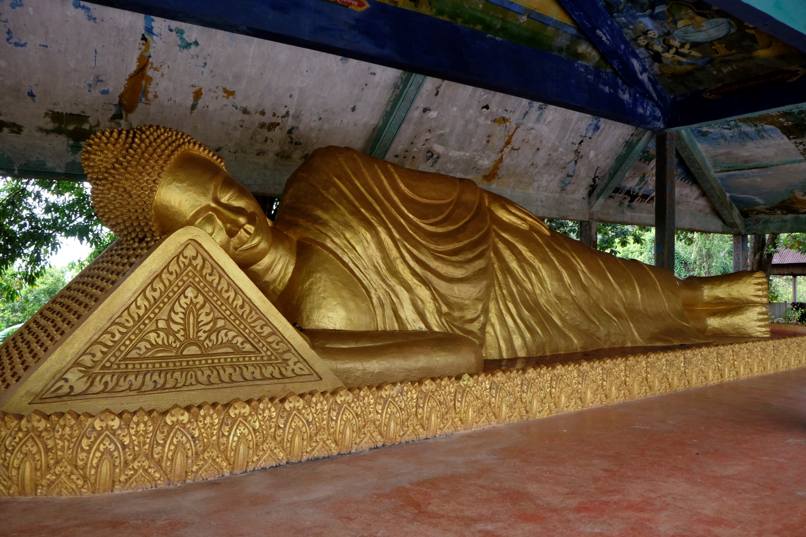 Pa ceļam uz pilsētu uzstumjos kalnā, kura galā atlaidies zeltīts Buda. Visu ceļu esmu viena pati un arī augšā iesākumā šķiet, ka neviena nav, līdz pamanu pie Budas kājām sēžam sīku vīru pelēkās drānās. Mēs sasveicināmies, palokot galvu, bet vairāk nekomunicējam. Vīrs tur rokās rotaļlietu un izskatās skumjš, atstāju viņu ar savām domām. Pati arī uz mirklīti apsēžos blakus Budam un atvados no Kambodžas. Ceru, ka man iznāks laiks un iedvesma uzrakstīt vienu kopēju pārdomu ierakstu, tomēr īsumā varu teikt, ka Kambodžā neiemīlējos. Bet, es nedomāju, ka tajā var vainot tikai Kambodžu. Es arī necentos iemīlēties. Iespējams, vajadzēja. Nezinu. Centīšos skatīties Laosā vērīgāk.