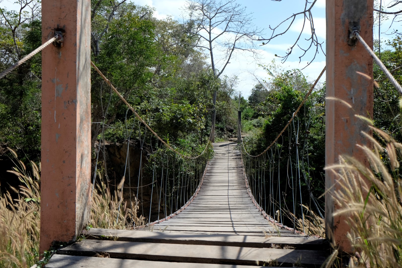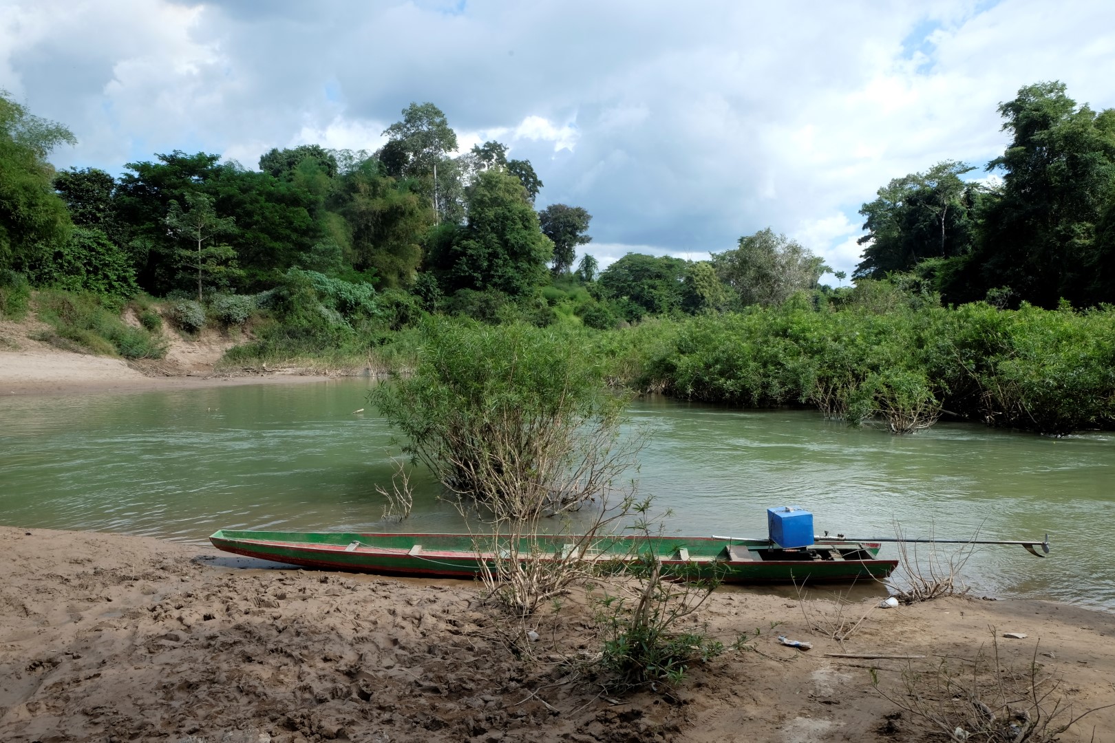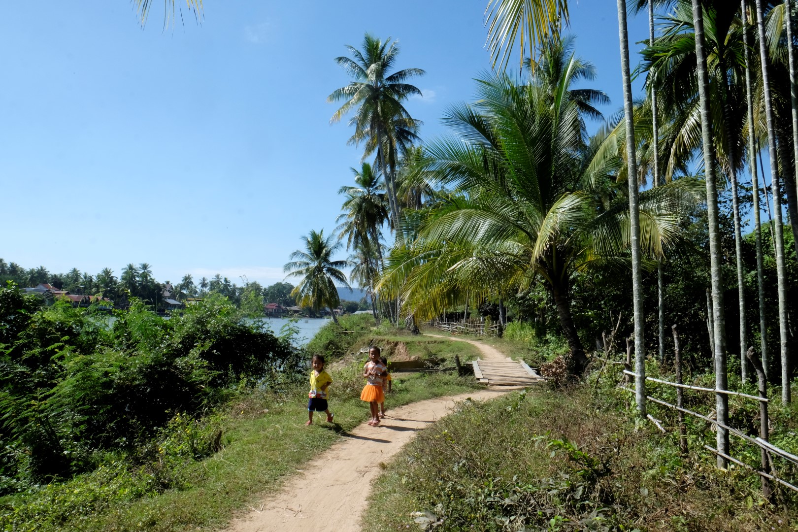 Pēc brokastīm dodamies salu izpētes pārgājienā. Lielākoties tūristi to šeit dara uz velosipēda, mēs esam nolēmuši iet kājām. Ejam gar mūsu, Don Det, salas malu, nu ļoti jauka pastaiga. Vienīgie traucētāji ir moči, kas pabrauc garām atstājot aiz sevis dzeltenu putekļu asti. Uz kaimiņu salu Don Khon ved tilts, otrpus tam mums prasa ieejas maksu, bet spāņi mūs ir samācījuši, ka vajag teikt, ka mēs neejam uz ūdenskritumu, bet uz kādu restorānu. Pasākām to un tiekam tālāk tāpat.