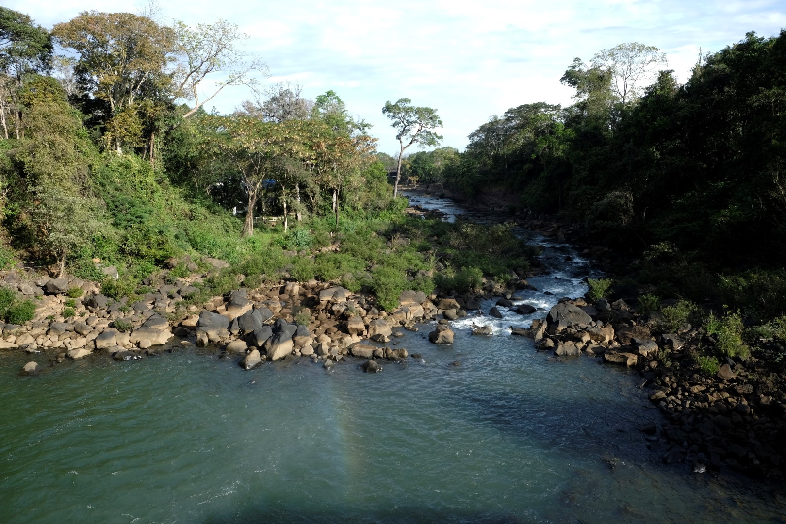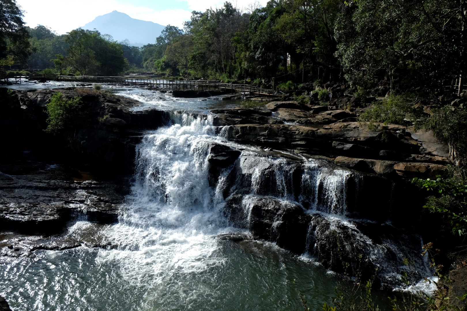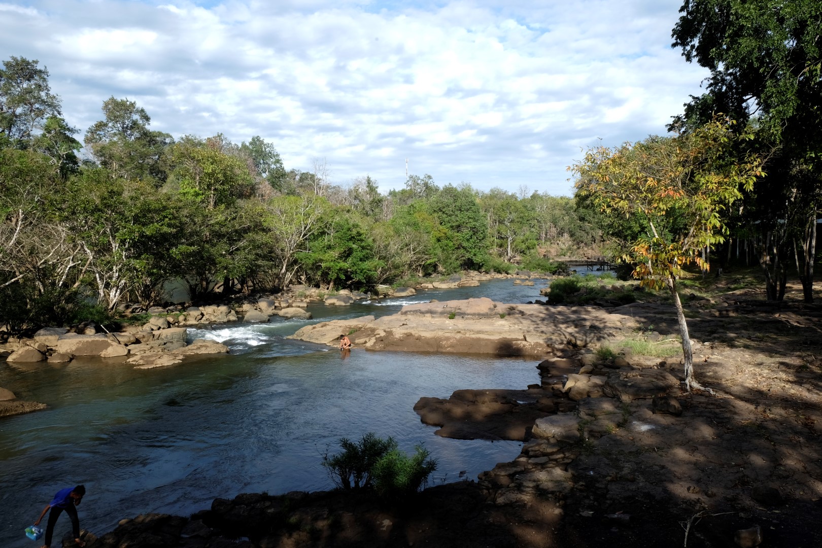 Rīta gaismā ūdenskritumi mutuļo vēl priecīgāk. Es uzrāpjos lielākajam no tiem uz muguras un veros krītošajā ūdenī no augšas, Martins izvēlas nokāpt ūdenskritumam pie kājām. Šis skaistulis ir vainojams pie tā, ka šorīt dabūju iet dušā ar auksto taziku. Kad prasīju saimniecei, kur palicis siltais ūdens, ko viņa vakar solīja, saņēmu atbildi, ka “Sorry, waterfall. No water. All village – same same.” Kā tieši ūdenskritums ietekmē ūdens padevi pilsētā, tā arī neizdevās noskaidrot. Galu galā – ne pirmā, ne pēdējā aukstā duša Āzijā.