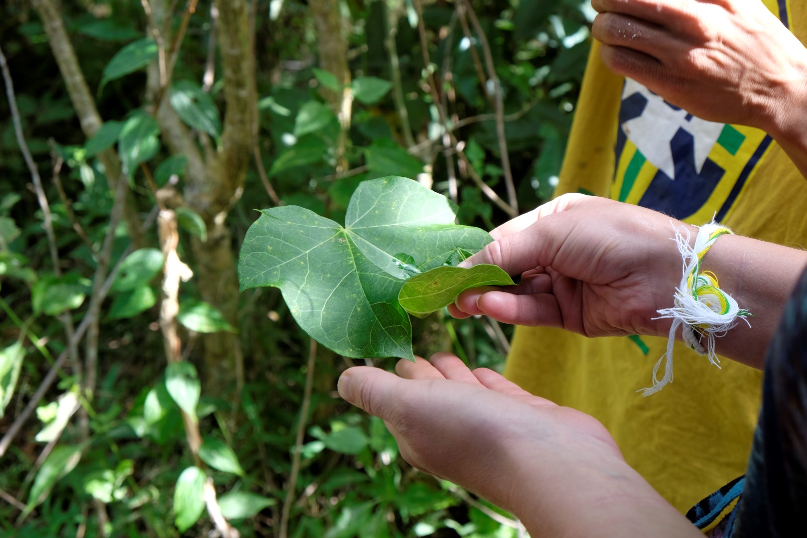 Kapteinis vada nelielu ekskursiju pa ciematu un apkārtnes laukiem. Tās laikā viņš rāda, kurus augus vietējie izmanto kuram mērķim, demonstrē kā no asas zāles var pagatavot šautriņai līdzīgu ieroci, ar kuru izšaut naidniekam aci. No cita auga tiek izspiesta sula, kurā iemērcot lociņā sasietu smilgu, var pūst nelielus ziepju burbuļus. Šī auga sula derot arī kā pretodu līdzeklis. Tad Huks noķer vienu no sarkanajām skudrām un dod mums apēst. Martins piesakās pirmais un atzīst, ka garša esot laba. Es mazliet baidos no skudruskābes, bet skudru tomēr nogaršoju, tiešām nav slikti. Saspiežot skudru, uz pirkstiem paliek patīkama skābena smarža, ar kuru var ierīvēties, izmantojot to kā dezodorantu.