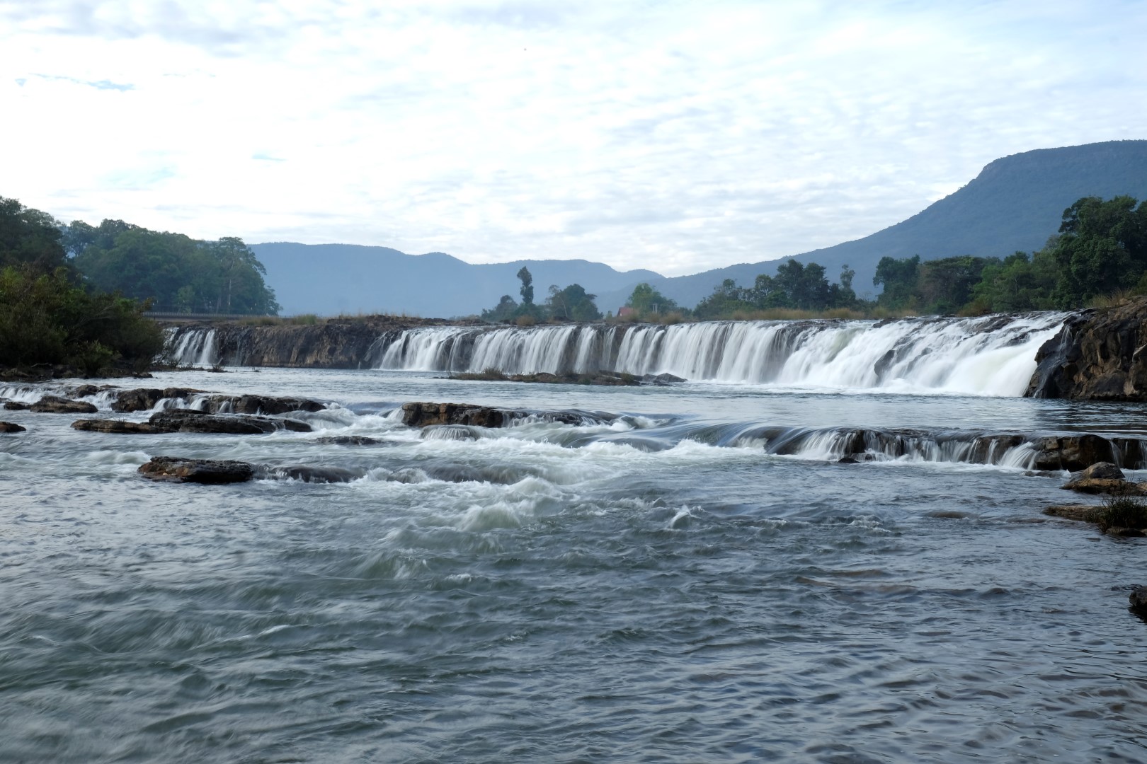 Neko darīt, griežam riņķī un braucam atpakaļ. Pa ceļam paēdam paši un ielejam vēl pāris zupas pudeles motocikla vēderā. Beidzot, pēc vairākiem bedru un smilšu kilometriem, esam klāt. Kā solīja motocikla izīrētājs, šeit esot skaistākie ūdenskritumi apkaimē.