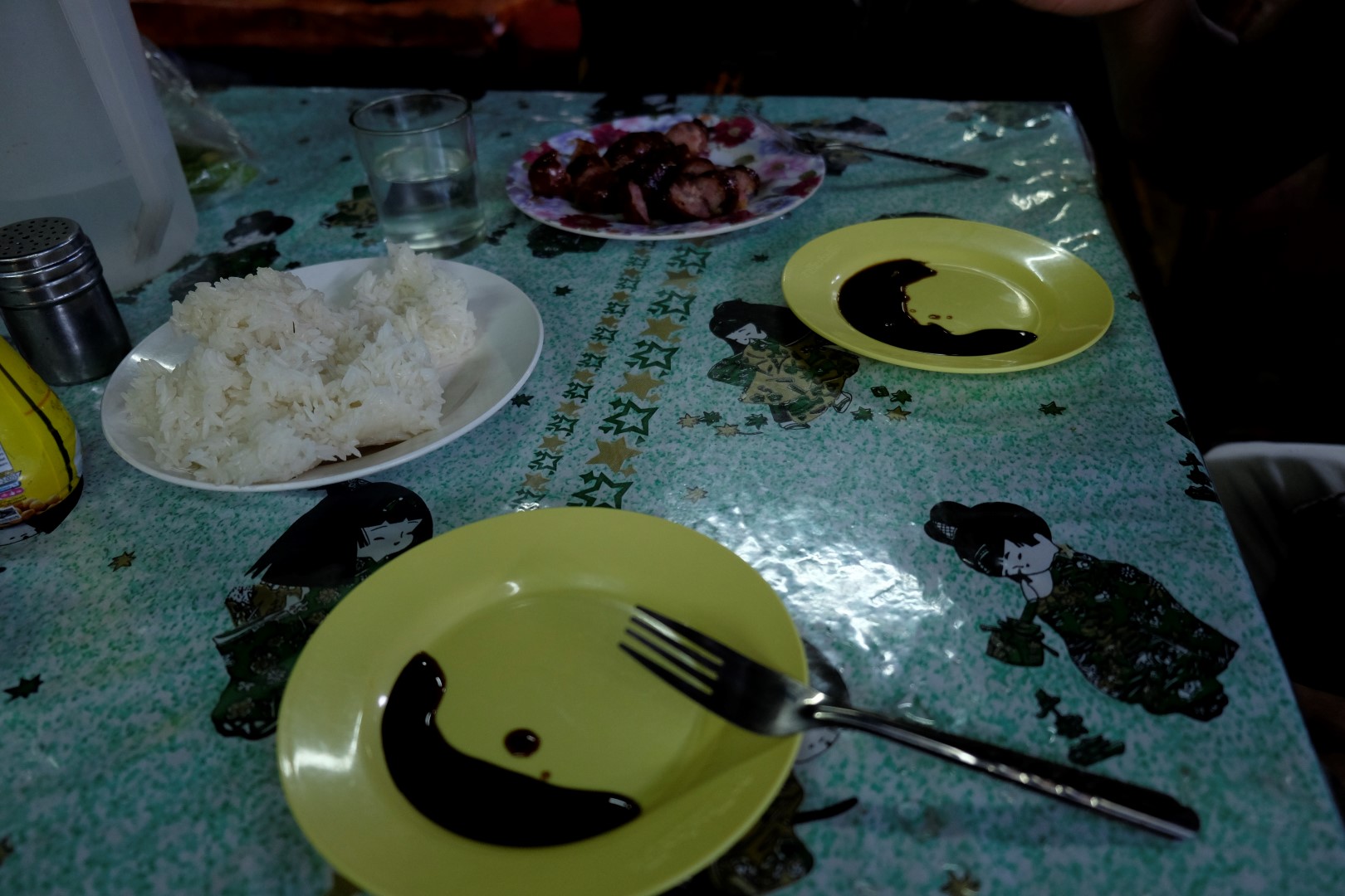 Pēc muzeja iegriežamies tirgū – paēst pusdienas un nopirkt pārtikas papildinājumus brokastīm. Pie vienas no pārdevējām pasūtām lipīgos rīsus un desu. Kad ēdiens tiek atnests, sieviete kaut ko pamana rīsos, ar rokām paņem vienu pikuci, kaut ko izņem laukā un noliek rīsus atpakaļ uz šķīvja. Lieki piebilst, ka viņi šeit nedezinficē rokas pēc katra procesa. Vistrakākais, ka rokas netiek mazgātas pēc “operācijām” ar skaidro naudu, kas, kā zināms, ir viena no netīrākajām lietām. Tagad man viss šķiet netīrs, desa garšo aizdomīgi. Paēdu ar gariem zobiem, cerot uz vēdera izturību.