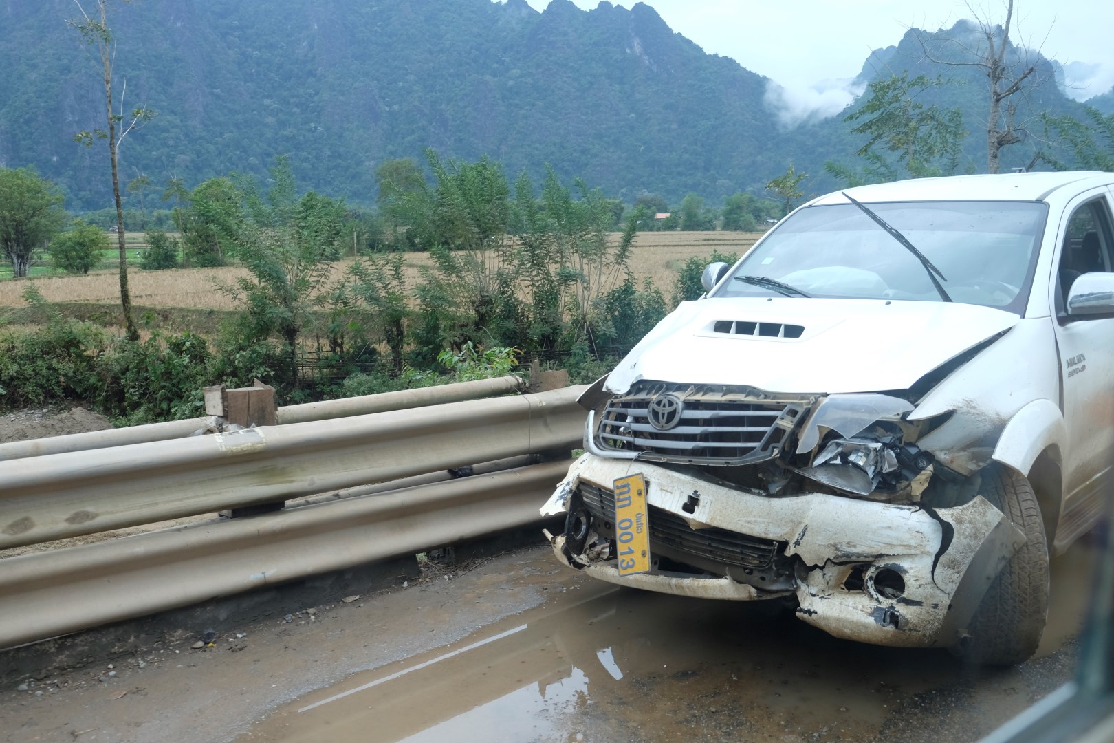 Vakar pierunājām Betu pievienoties stopēšanas atrakcijai uz Luangprabangu. Tomēr šorīt, ieraudzījusi, ka ārā līst, viņa izlemj par labu autobusam. Ieturam hostelī kārtīgas brokastis (kas iekļautas naktsmītnes cenā), nočiepjam vēl pāris banānus ceļam un dodamies stopēt.
