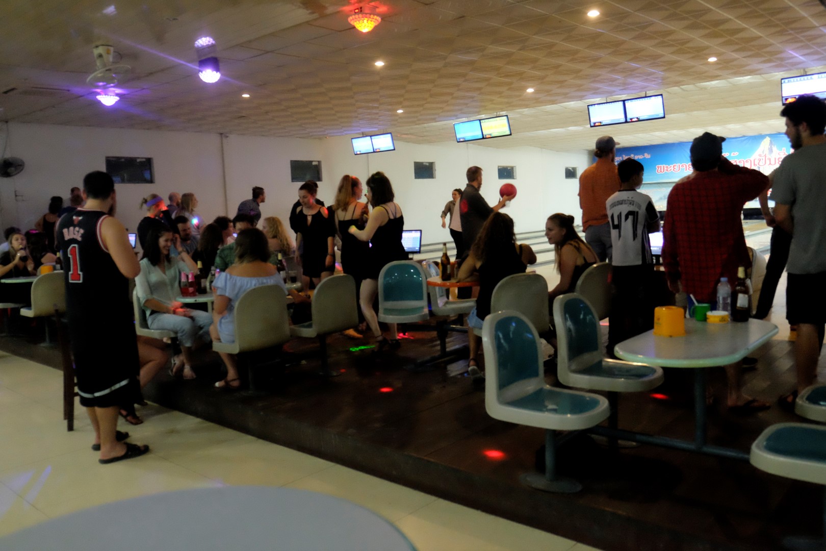 Pēc kārtīgas izsmiešanās nevaram izlemt – doties pie miera vai braukt spēlēt boulingu. Ņemam talkā parastu monētu (šoreiz Tupakamaru neceļo ar mani) un tā mūs vēl gulēt nelaiž. Tā kā boulinga vieta, kā apgalvo Noems, atrodas nepilnas stundas gājiena attālumā no centra, noķeram tuktuku. Kad ierodamies “notikuma vietā”, stāvvieta ir tuktuku, bet boulinga zāle – ārzemnieku pilna. Kopumā prieks nav lēts – 20 000 kipi (2,50 USD par partiju no cilvēka), bet ir jauki pārmaiņas pēc “pabumbot”. Kopumā pieveicam trīs partijas, tad gan atgriežamies centrā un dodamies gulēt.