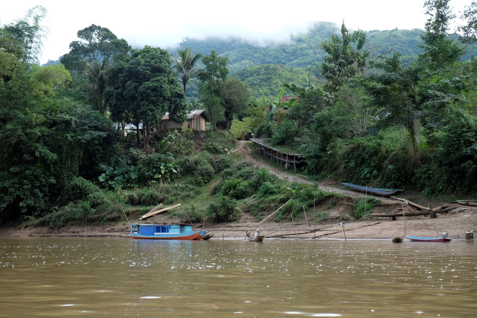 Tiekam sasēdināti koka laivā, motors sprauslādams iedarbojas, un mēs uzsākam ceļu augšup pa upi. Jau pēc brīža skati ir tieši tādi kā filmā – augsti, džungļu zaļumiem apauguši kalni un mākoņu migla tajos.