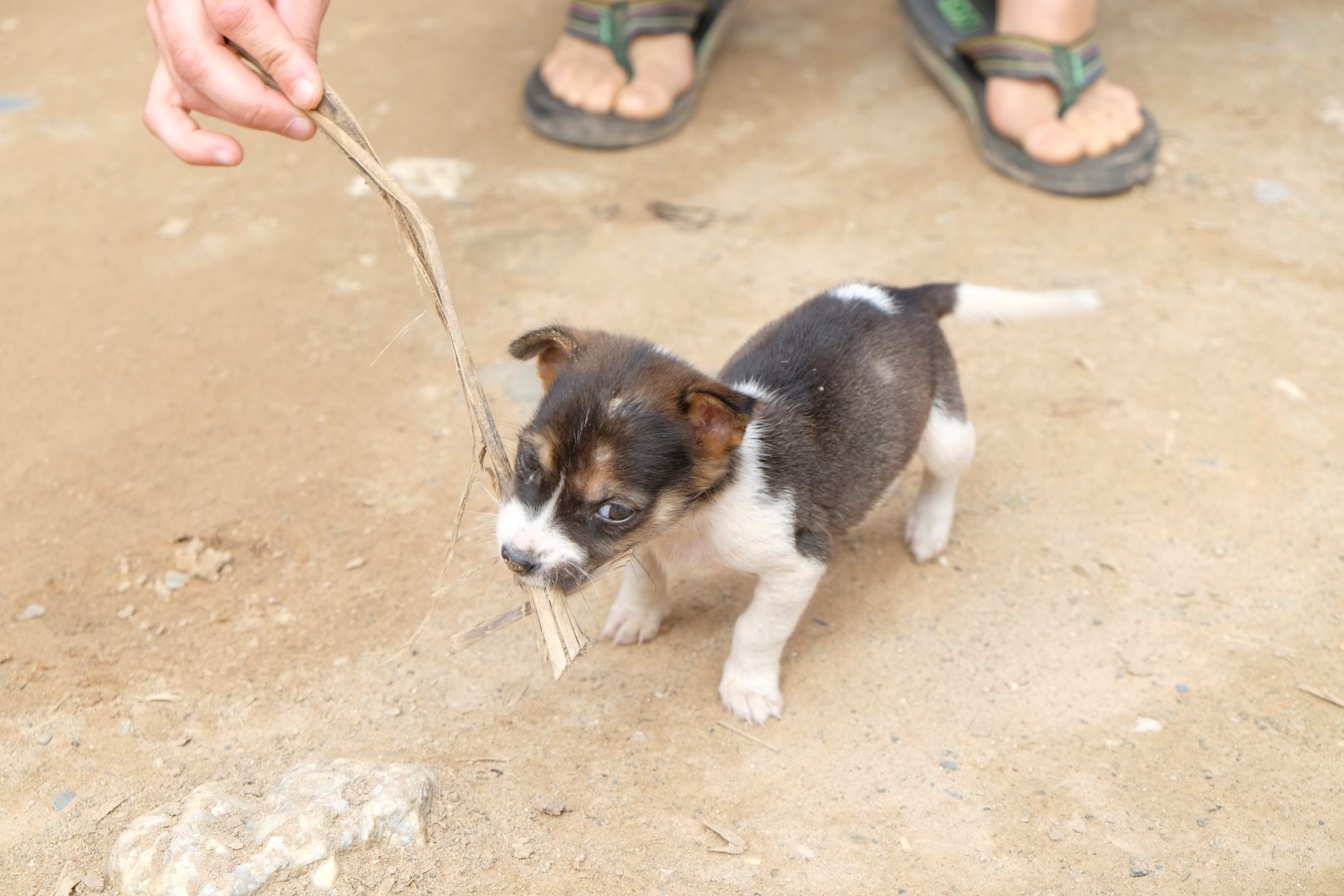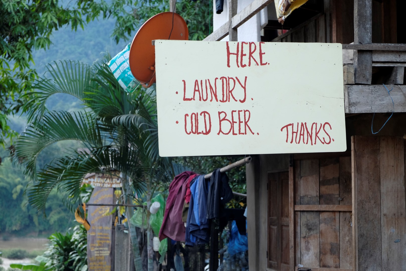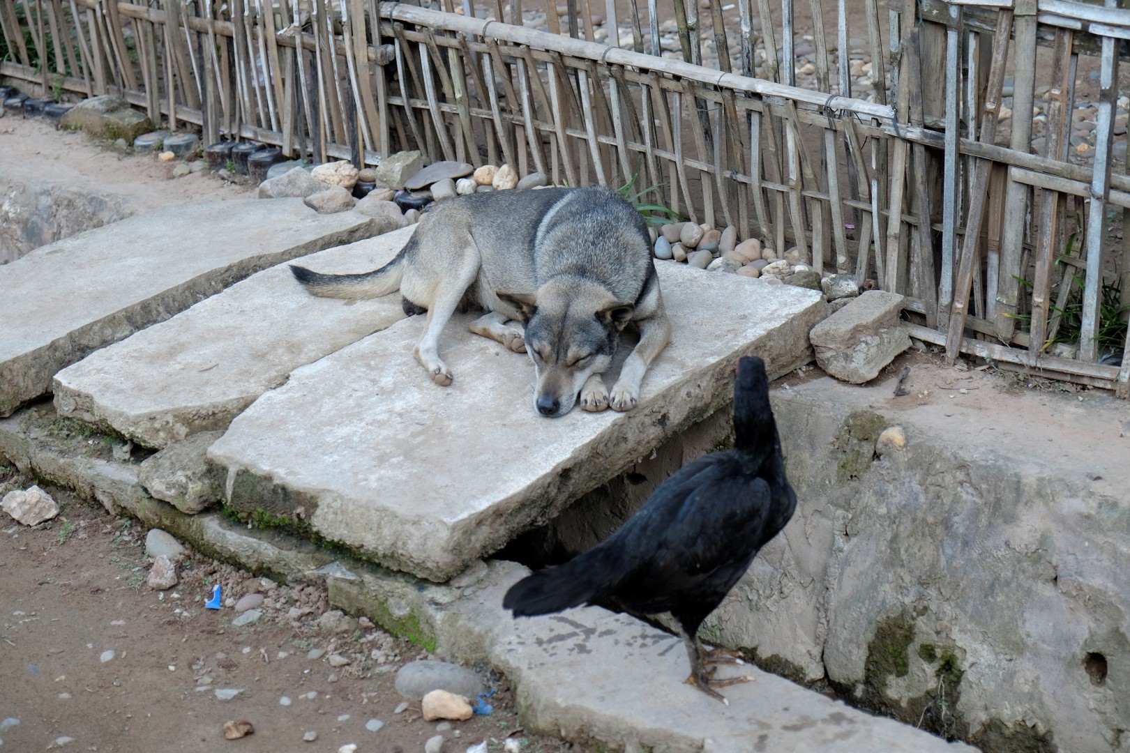 Lai visa diena nebūtu tikai datora sabiedrībā pavadīta, izeju atvadu pastaigā pa ciematu. Tas, protams, nav perfekts. Aiz centrālās ielas govis leksē iekšā atkritumus, vietējie neslēpti tecina lao lao ielas malā, kaķi un suņi ir tikpat izsalkuši kā citviet Āzijā. Tomēr šī ir mierīgākā vieta Laosā, kur iznācis līdz šim pabūt. Riktīgi žēl, ka mans lidojums ir jau pēc pāris dienām, gribētos šajā apvidū pavadīt vismaz vēl nedēļu – palikt pa nakti kādā no kalnu ciematiem, pabraukties augšup pa upi. Pati vainīga, nevajadzēja tik ilgi pārējās vietās sēdēt.