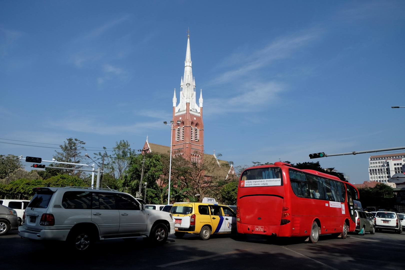 Nākamais uzdevums ir tikt pie precīzas dolāru summas – 40 un 2 dolāriem, kas jāpievieno katra pie sava iesnieguma, norādot banknošu numurus. Mjanmā par lietojamām tiek atzītas tikai tādas dolāru banknotes, kuras izskatās kā tikko no drukātavas. Mana 100 dolāru banknote, kas ir jauna un bez bojājumiem, netiek ņemta pretī, jo bijusi pārlocīta uz pusēm. Tā, lūk! Nāksies vien mainīt kjatus. Vienā no maiņas punktiem iemainu 30 dolārus (vairāk viņiem nav), pie atlikušajiem 12 tieku kādā bankā. Tās darbinieki maiņas procesu veic svētā nopietnībā: pieprasa pases datus, tad pārskaita vienu desmit dolāru banknoti un divas viena dolāra banknotes skaitīšanas mašīnā. Divas reizes. Finālā darbinieks man izsniedz naudu kopā ar A4 kvīti par šo darījumu.