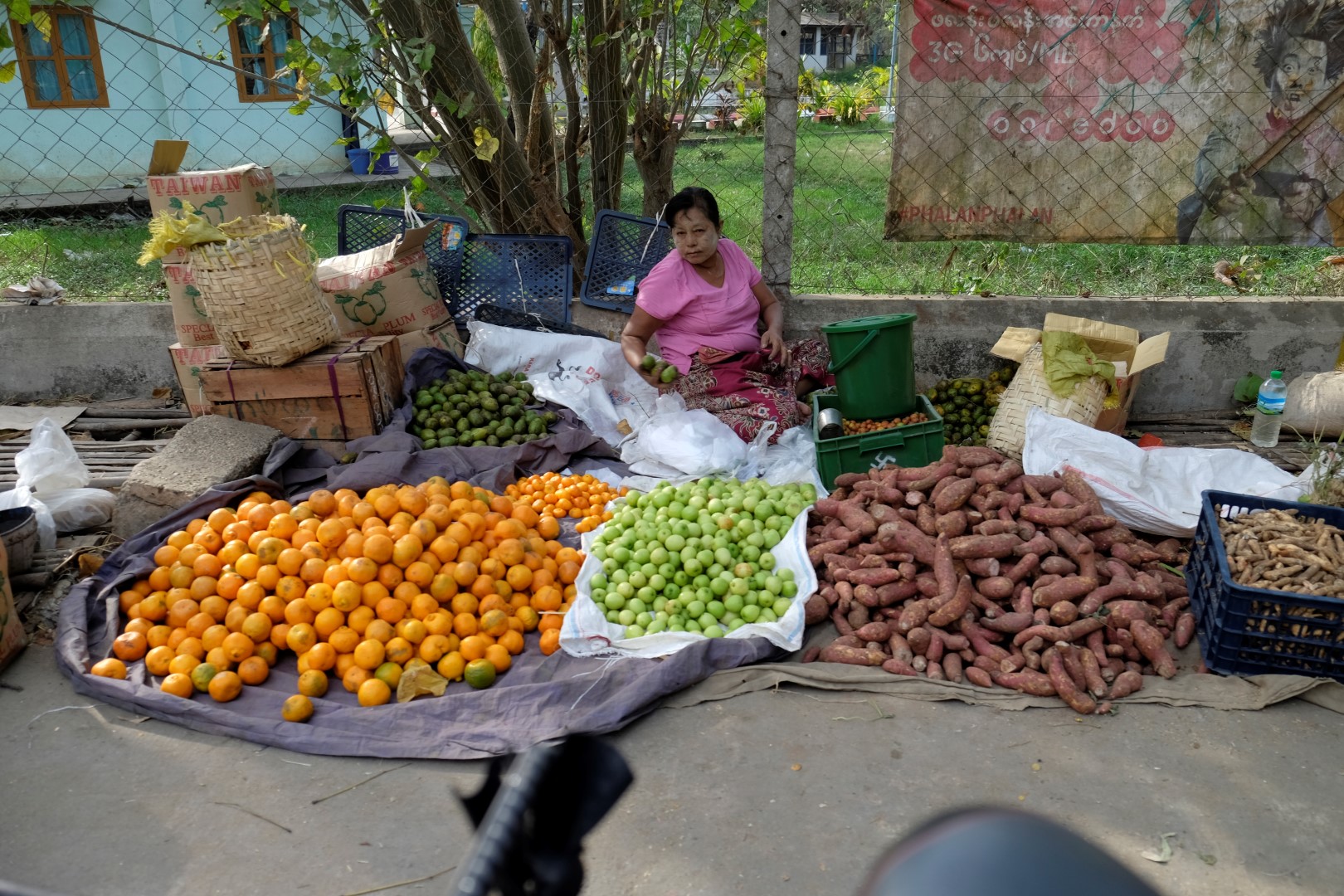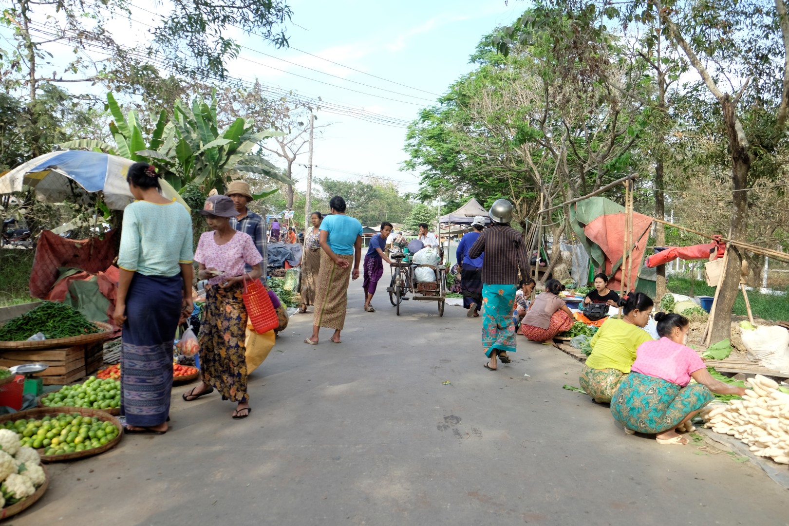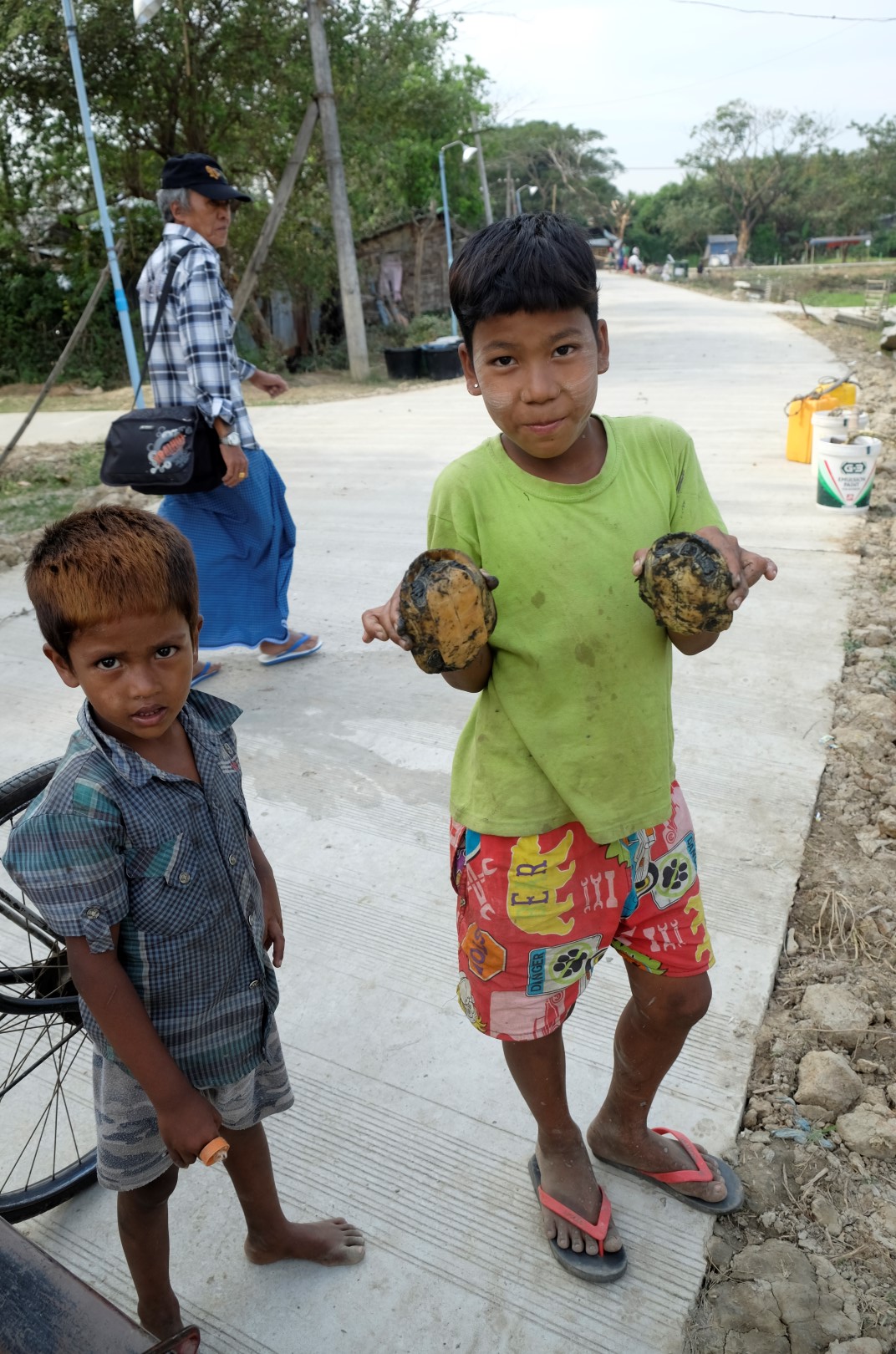 Pirmajā kioskā tieku pie tanakas rakstiem uz vaigiem un deguna. Iesākumā domāju, vai to vajag, bet atcerējusies, ka šodien neesmu uzklājusi pretiedeguma krēmu, parakstos uz dekorācijām. Bet savā ziņā tās palīdz saziņā ar vietējiem, visi smaida, ka ārzemnieki atzīst viņu tradicionālās metodes par labām esam.