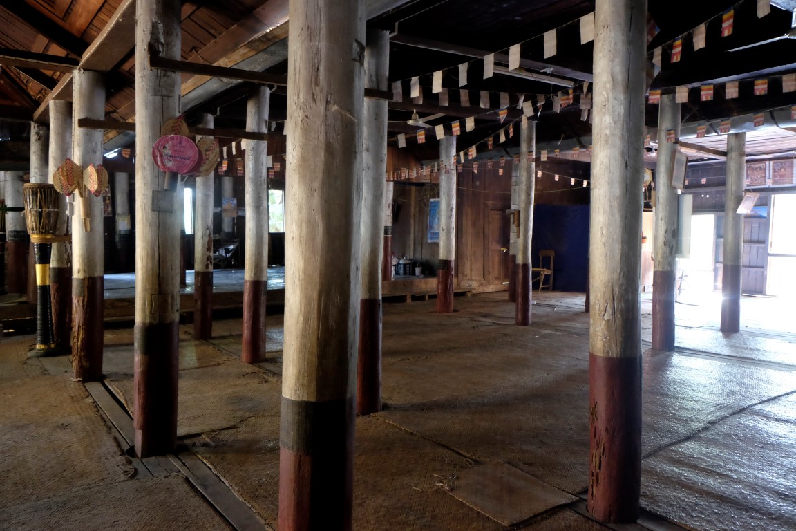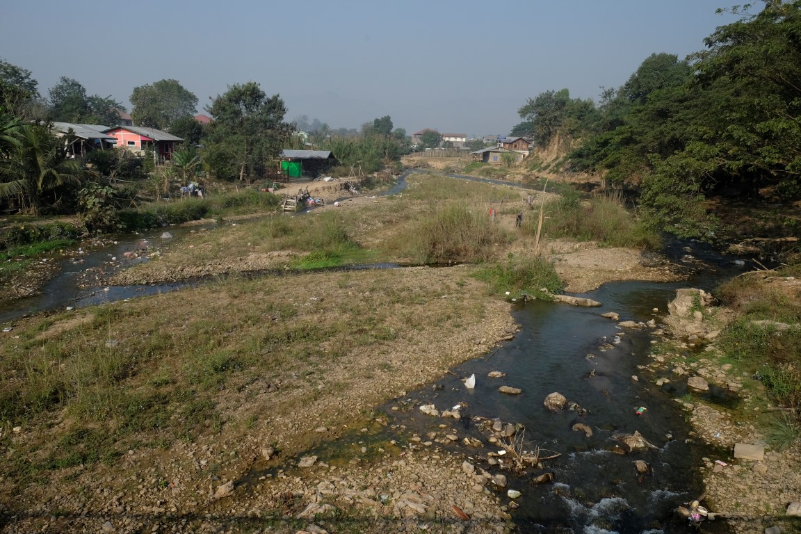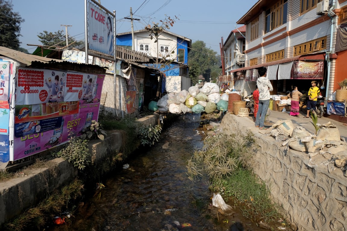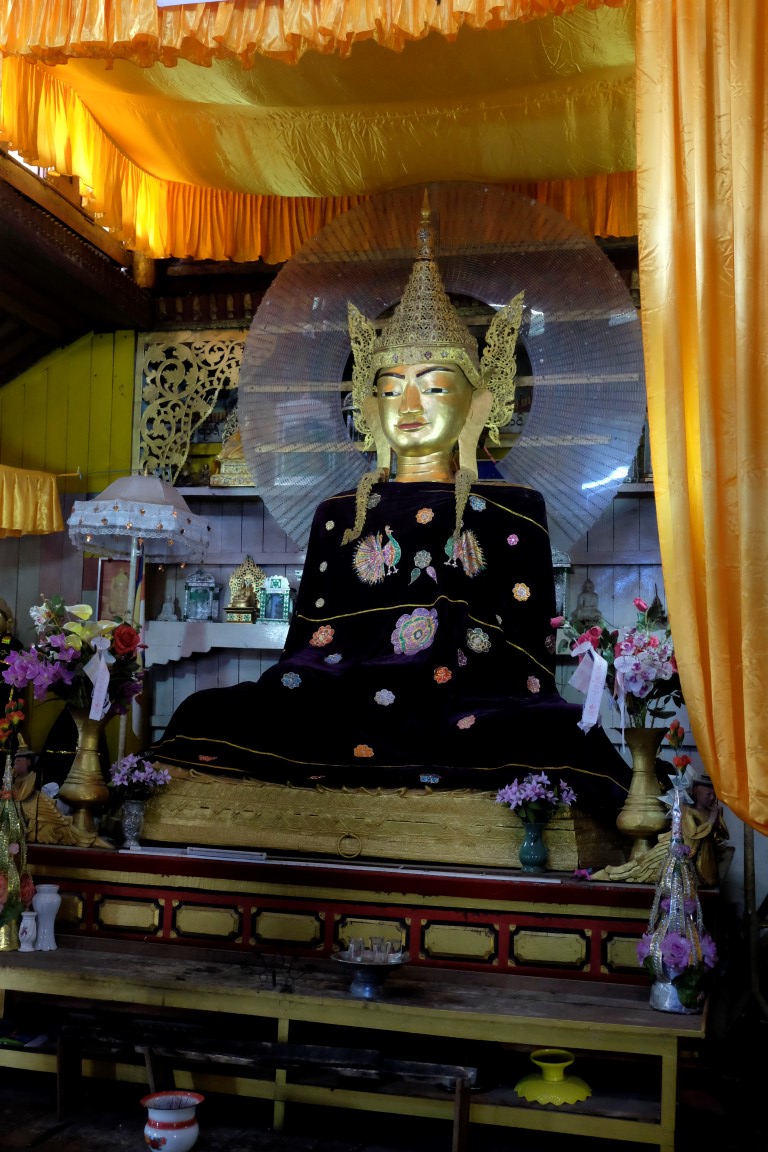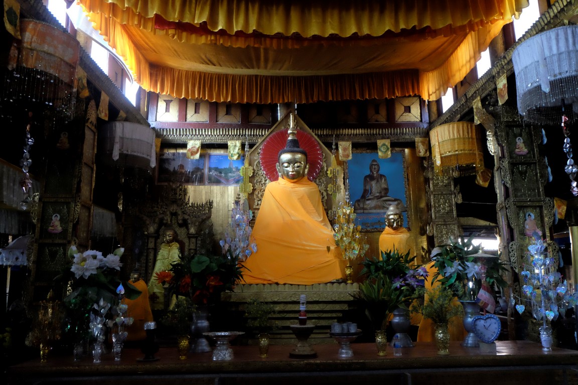 Pulksten trijos uz divām stundām veras vaļā objekts, kas kartē atzīmēts kā Hsipaw pils. Tas gan ir mazliet pārspīlēts apzīmējums, celtne drīzāk atgādina villu, bet tāpat ir diezgan izskatīga. Mani gan vairāk “paņem” upes malā sagumusi koka māja. Tās dienas ir skaitītas, bet kaut kas ļoti pievilcīgs ir šajā celtnē, varu iedomāties tās auru ziedu laikos.