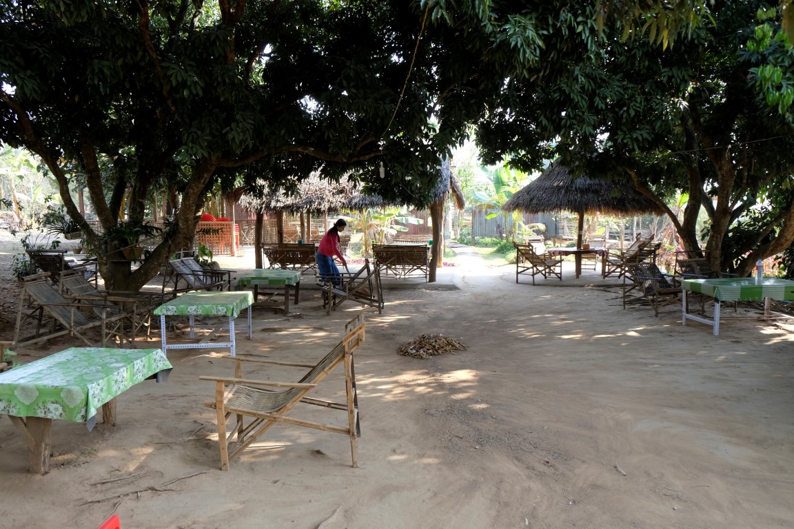Ir astoņi no rīta un atzīšos, ka man salst. Tikai pēc pusstundas gājiena, kad ķermenis iekustināts un saule izklīdinājusi miglu, esmu gatava novilkt jaku. Pie lielā tamarinda koka griežos pa kreisi un drīz vien esmu Popkorna dārzā. Nosaukums briesmīgs, bet vieta izskatās tik jauka, ka gribas mirklīti pasēdēt. Noskaidrojusi, ka šeit var dabūt īstu kafiju, pasūtu to un atlaižos vienā no bambusa krēsliem. Drīz tiek atnesta melna un smaržīga kafija, kurai komplektā nāk jocīgi rīsu “cepumiņi” – no ārpuses grauzdēti, bet iekšā mīksti. Garšo interesanti, bet ne slikti.