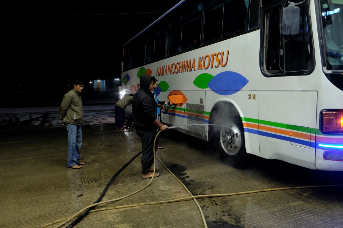 Autobuss gan atnāk stundu vēlāk nekā norādīts biļetē. Biju lūgusi vietu pie loga. Tā ir pie loga. Pēdējā rindā, blakus šķirbainām durvīm, kaudzei vietējo un kaudzei somu uz grīdas. Braucam palēkdamies, degvielas smakas pavadībā. Jūtu, ka šīs būs garas 12 stundas. Mierinu sevi, ka no negulēšanas un kratīšanās vēl neviens nav nomiris, un pēc 12 stundām šitas viss būs galā. Lai bremzes pēc brauciena pa serpentīna ceļiem ātrāk atdzistu, tām benzīntankā minūtes desmit tiek liets virsū auksts ūdens.