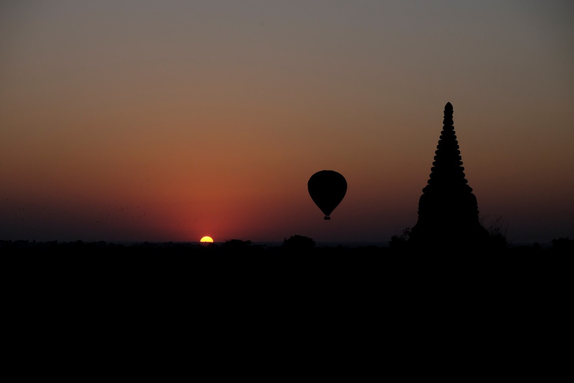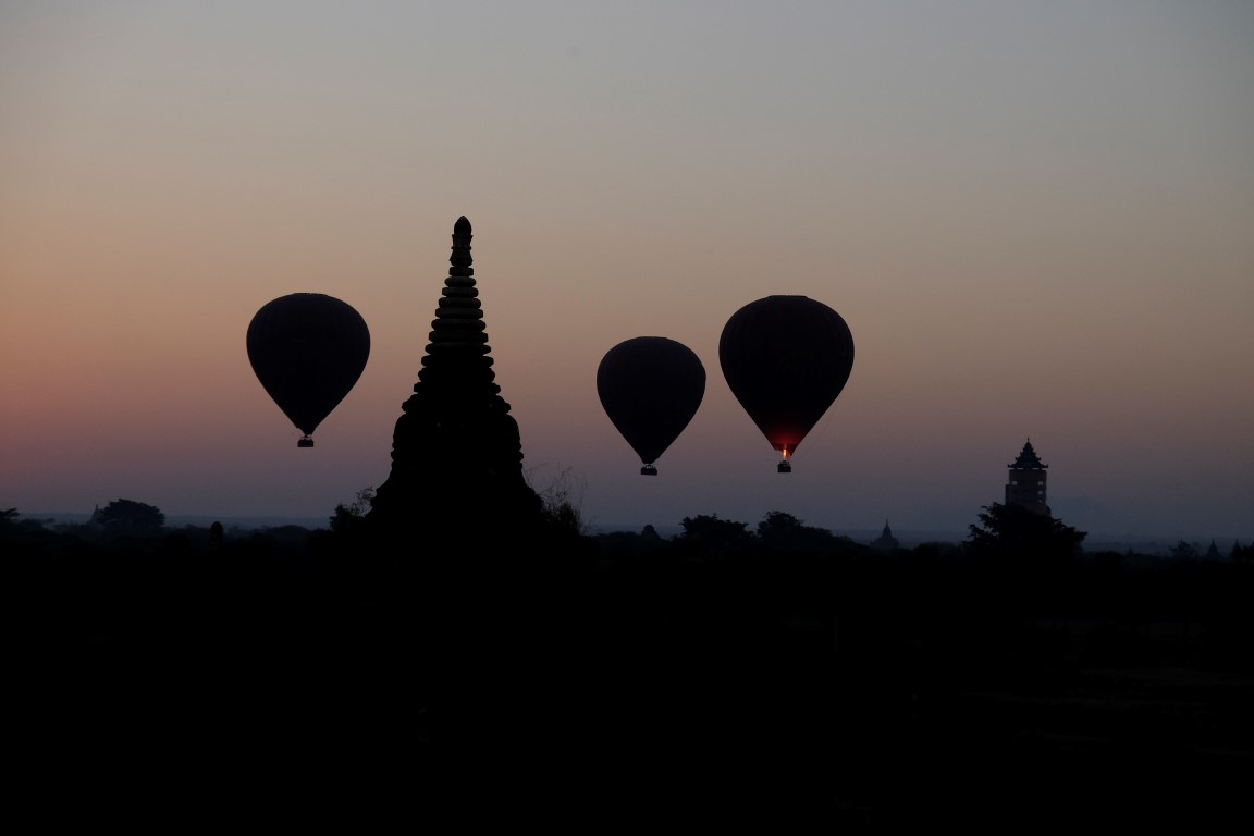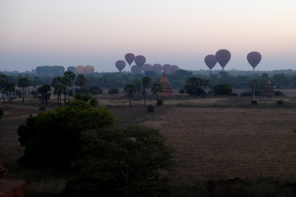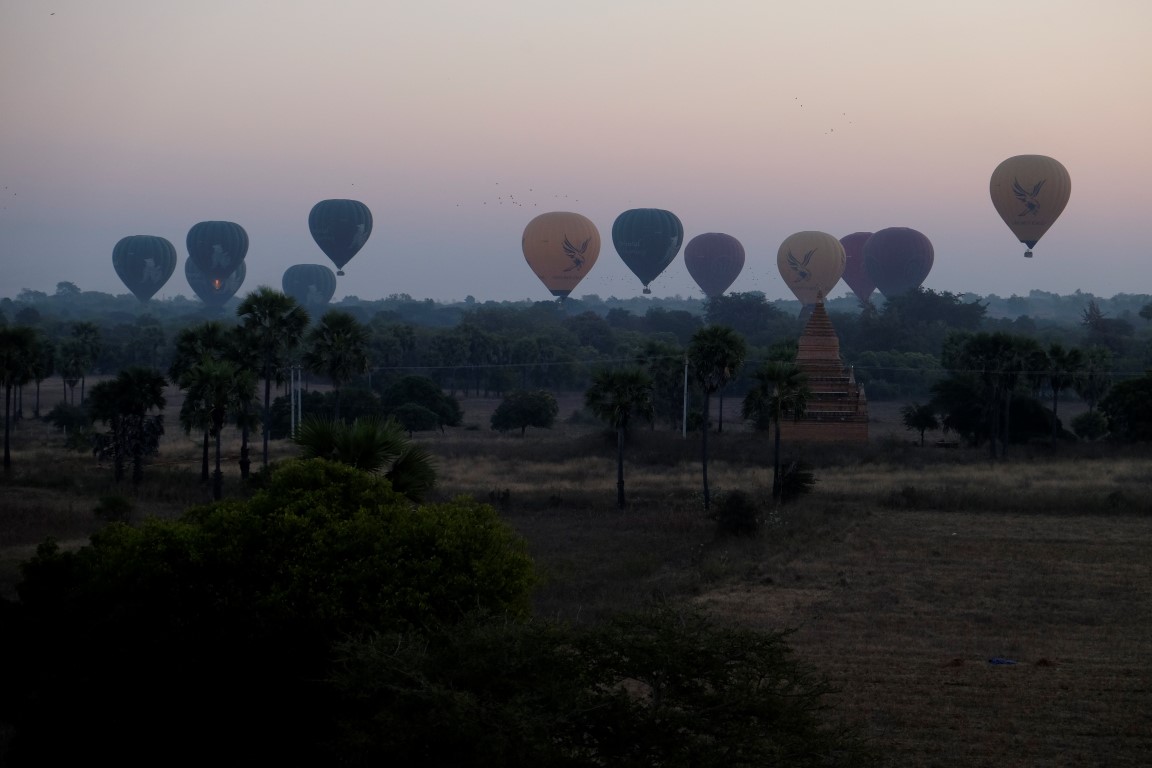 Varu viņam atriebties agri no rīta, kad ceļos uz saullēktu. Sakrāmēju arī somu, jo uzreiz pēc atgriešanās mani gaidīs autobuss. Iesākumā viesnīcnieks apgalvoja, ka biļetes palikušas tikai uz agro autobusu, kas nozīmētu, ka uz saullēktu es nepaspētu, bet, redzot manu bēdīgo seju, tomēr samenedžēja iespēju tikt vienā no vēlajiem busiņiem. Es jau vakar no rīta jutos kā noziedzniece – kā var gulēt, kad dažus kilometrus no tevis lido gaisa baloni. Tāpēc galīgi negribējās palaist garām iespēju vēl pēdējo reizi palūkoties uz lidoņiem no citas Baganas perspektīvas.