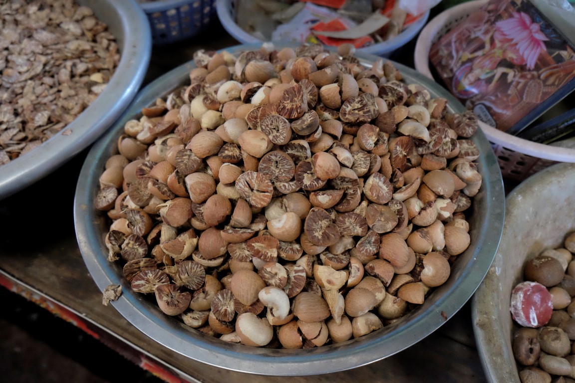 Paēduši apskatām vietējo tirgu. Cilvēku te nav daudz un tūrista vispār neviena, tāpēc tirgus sievas ir priecīgas ar mums pakoķetēt. Īpaši izceļas Makss, kurš tīri labi apguvis vairākas frāzes un skaitļus birmiešu valodā – viņš pārspīlēti kaulējas, ziņkārojas ap nepazīstamiem produktiem, samīļo rotaļu zvērus. Vietējiem ir cirks par brīvu.