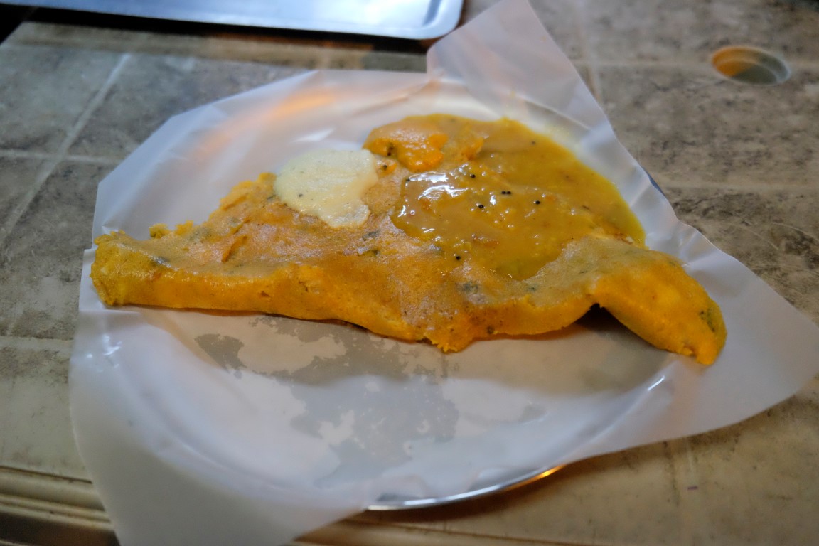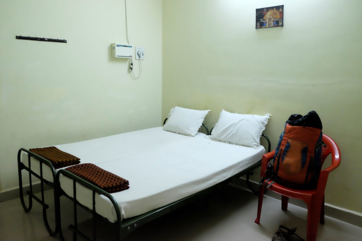 Ar atvieglojuma sajūtu ieraugu gaismas kasti, kurā spīd manas viesnīcas nosaukums. Tajā jāveic zināmi papīru darbi, tad varu ievākties istabā. Tā ir ļoti parasta istaba ar metāla gultu un izdilušiem palagiem. Bet tīrs gan te ir, tas tiesa. Drusku atpūtusies, eju meklēt vakariņas. Parasti jaunā valstī pirmajās dienās cenšos ēst saudzīgāk, lai ķermenis iepazīstas ar jaunajiem mikrobiem. Bet, tā kā es šodienas laikā – sākot no lidostas un beidzot ar viesnīcu – neesmu redzējusi nevienu ārzemnieku, šeit vienkārši nav nekā cita kā ielu ēstuves. Un ēst ta gribas! Piesēžu vietā, kur vīrs cep dažādus mīklas izstrādājumus. Tie tiek servēti ar visādām mērcītēm un, kā jau Indijā, jāēd ar pirkstiem. Esmu atrakcija vietējiem, bet kopumā cilvēki izturas laipni. Apēdu divas “pankūkas”, samaksāju 40 rūpijas (0,60 eur) un dodos atpakaļ.