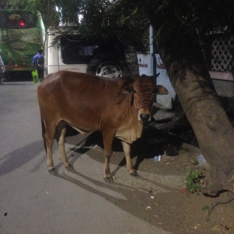 Ielas ir nedaudz pilnākas nekā Āzijā, vienīgi ar močiem viņi brauc straujāk un neprognozējamāk, vairāk jāuzmanās. Mana viesnīca atrodas vienā no tempļa lokiem, rīt pastāstīšu vairāk. Bet templis ir patiešām iespaidīgs, eju cauri n-tajiem vārtiem, lai nonāktu man vajadzīgajā ielā. Ielu malās lapas un atkritumus grauž govis un kazas, mīņājas izkrāsots zilonis.
