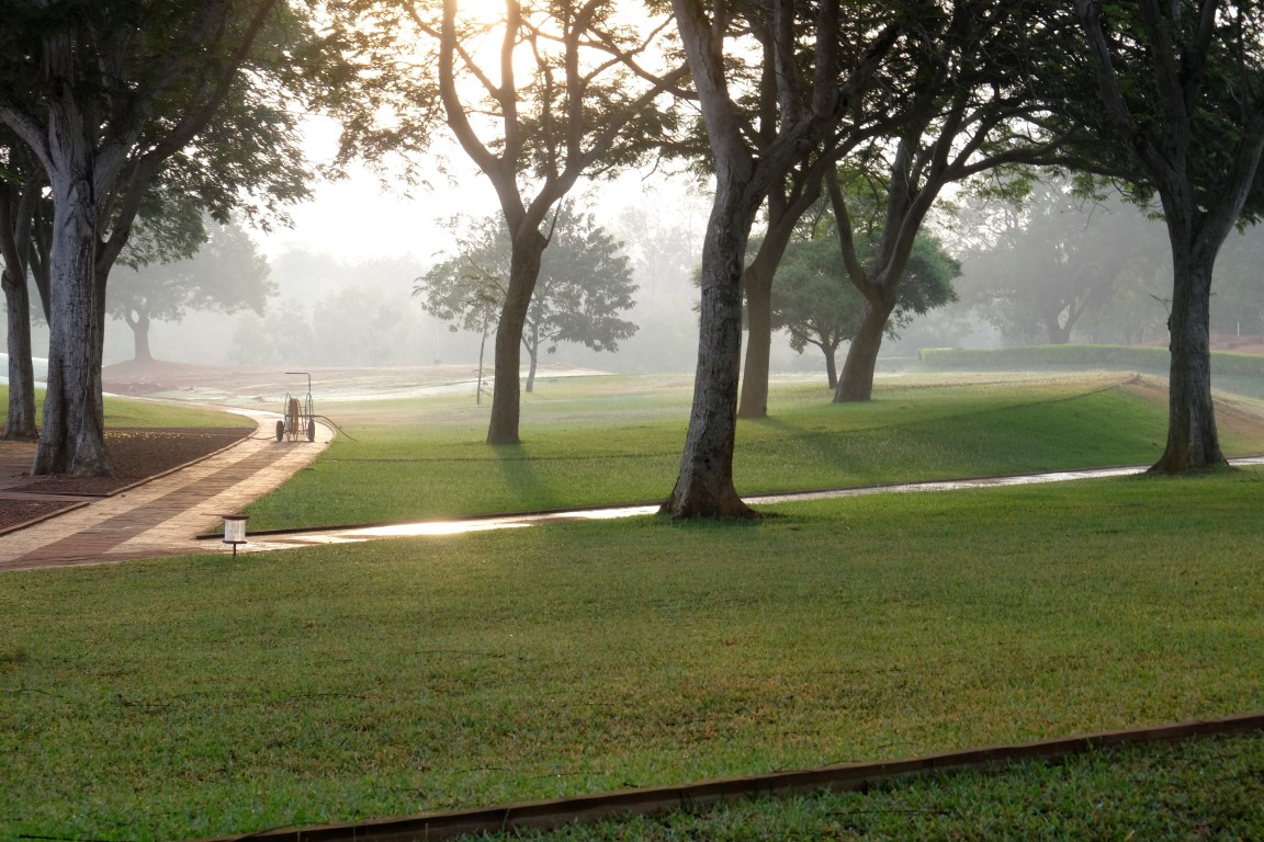 Uz meditācijas beigām daļa cilvēku sāk staigāt apkārt, drusku kliedējot īpašo noskaņu. Drīz vien aust arī saule un pasākums ir galā. Es arī vēl brīdi uzkavējos, nofotografēju zelta bumbu tuvplānā, tad dodos atpakaļ uz viesnīcu brokastot.
