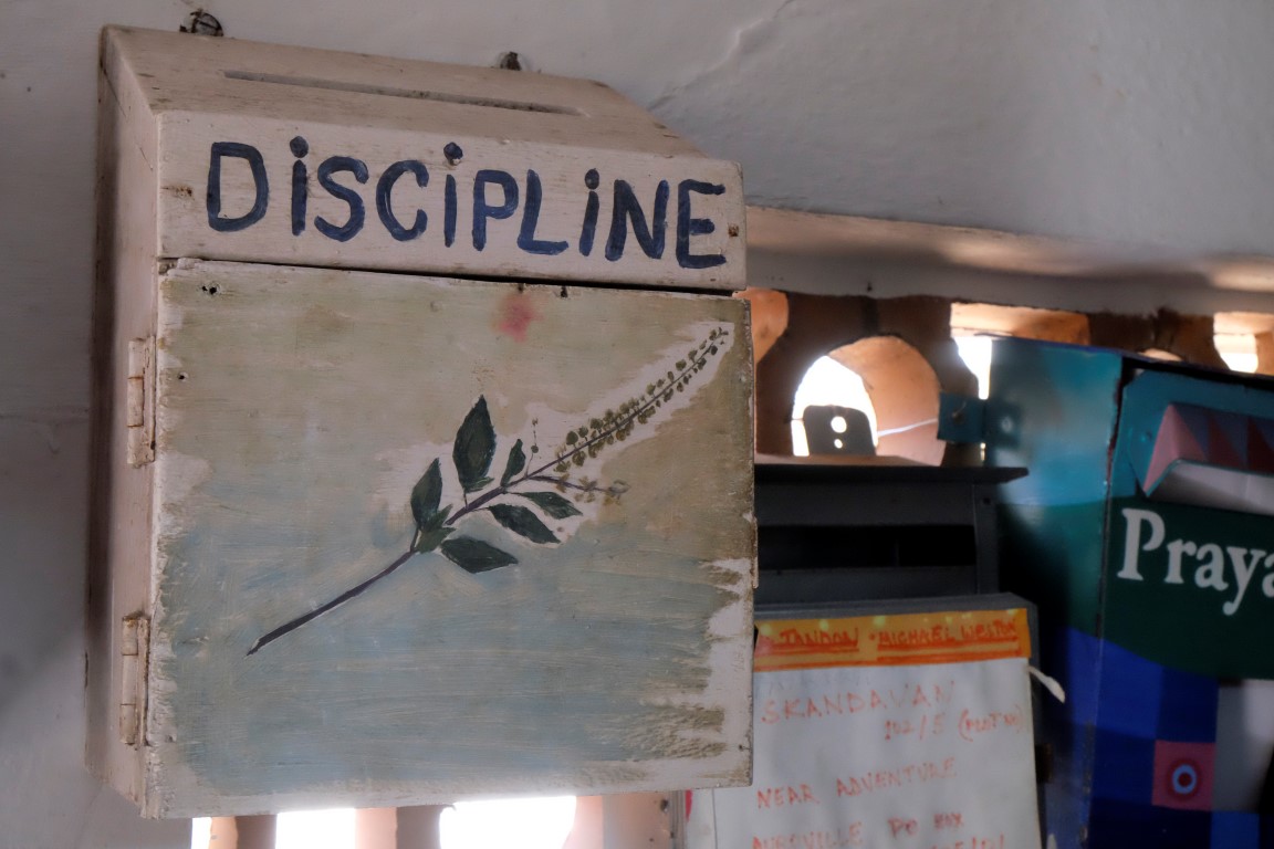 Pēčāk aplūkoju fotogrāfiju izstādi, kurā figūras no tempļiem papildinātas ar kādu upanišadu vai citu spārnotu tekstu. Tad netīšām nonāku nelielā bibliotēkā, pēc tam tikpat netīšām iemaldos pastā. Noskaidroju, ka šeit pat kaut ko var nosūtīt uz Latviju, kas no iepriekšējām valstīm bija neiespējami vai nenormāli dārgi, tuvākajās dienās izveikšu mantu revīziju. Pastkastītes šeit ir burvīgas. Nu kur vēl tu vari nosūtīt vēstuli Radošumam, Disciplīnai vai Vienkāršībai.