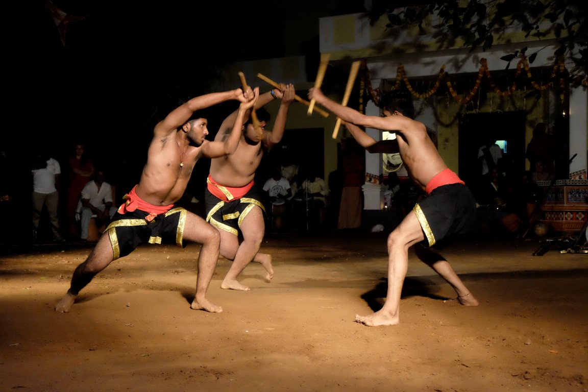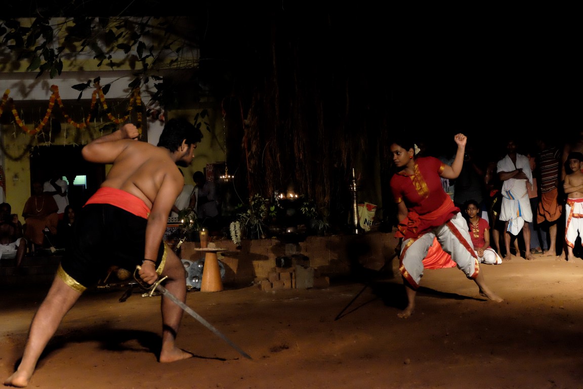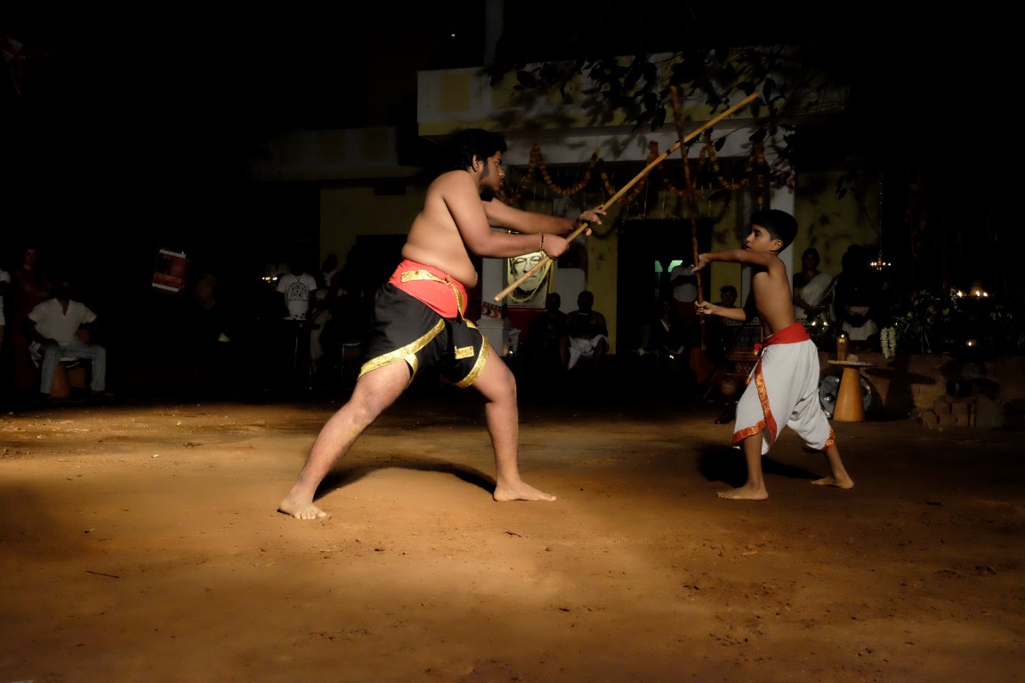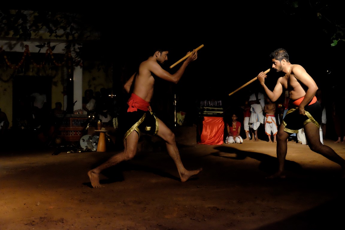Tad aši tiek savākts “kaujas lauks”, lai dotu vietu vakara naglai – senās Kalaripayattu cīņas mākslas paraugdemonstrējumiem. Kad briti pārņēmuši Indiju, tā tikusi aizliegta, bet tās praktizētāji apcietināti. Nu jau kādu laiku šī cīņas māksla atkal tiek praktizēta.