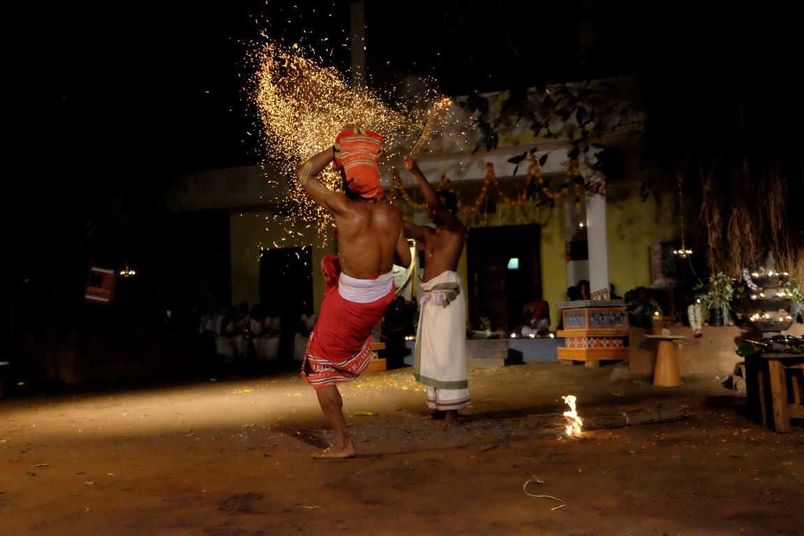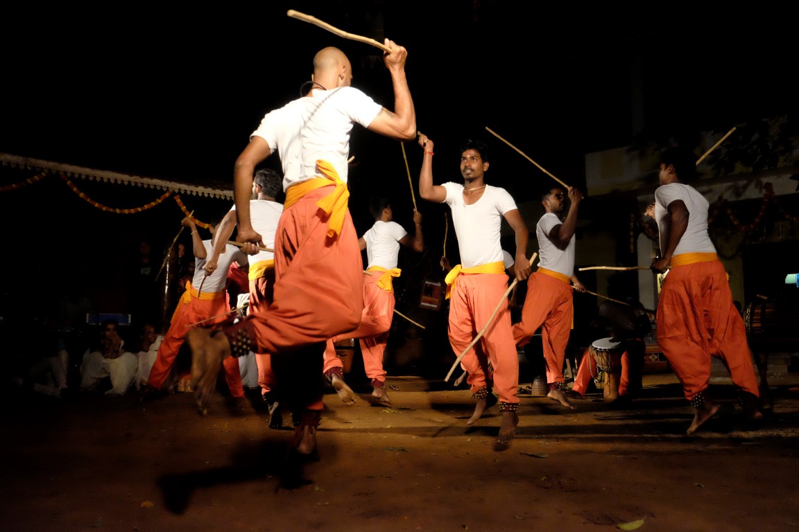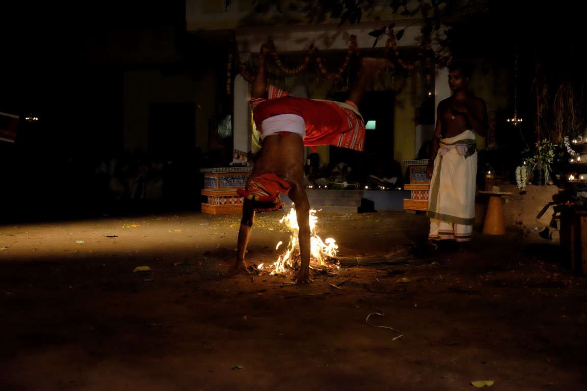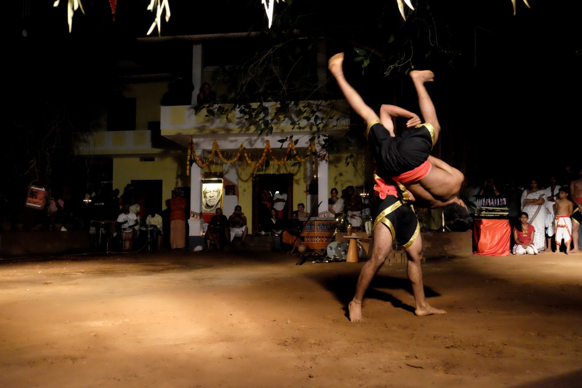 Tad aši tiek savākts “kaujas lauks”, lai dotu vietu vakara naglai – senās Kalaripayattu cīņas mākslas paraugdemonstrējumiem. Kad briti pārņēmuši Indiju, tā tikusi aizliegta, bet tās praktizētāji apcietināti. Nu jau kādu laiku šī cīņas māksla atkal tiek praktizēta.