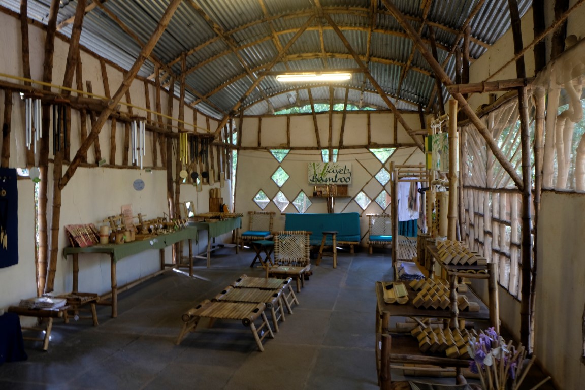 Pēc pusdienām, atvadījusies no pārējiem, dodos atpakaļ. Pa ceļam izpētu šejienes bambusu centru, kur no bambusiem tiek gatavoti mūzikas instrumenti, rotas lietas, trauki, mēbeles, māju konstrukcijas un kas tik vēl nē. Šveicietis Kriss ir sarunājis šeit padarboties, viņu interesē bambusa izmantošana celtniecībā. Es gan saprotu, ka klasiskais koks mani valdzina krietni vairāk. Iegriežos arī kaimiņu galdniecībā, viņi arī ļauj visu apskatīt un vēl pacienā ar tēju, bet pirkstus “zāģī iebāzt” gan neļauj.