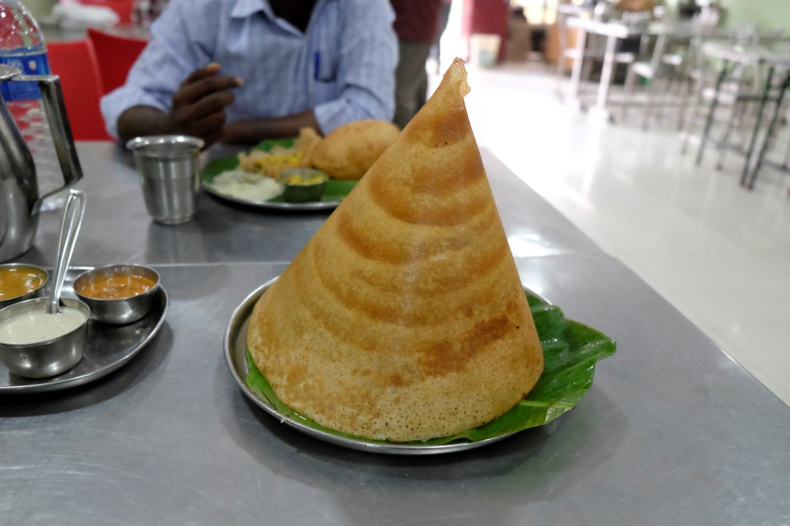 Norunātajā laikā Kesavans gaida pie tempļa. Nebiju īsti droša, ka šāda, vēlā vakarā uz ašu roku sarunāta tikšanās būs spēkā, bet tur viņš stāv kā dzīvs. Uzzinājis, ka neesmu ēdusi brokastis, Kesavans aizved mani uz vienu no daudzajiem šejienes restorāniem, lai varu tikt pie gī dosas. Pēc tam vietējā kafijas veikaliņā iemalkojam kafiju – un diena var sākties.