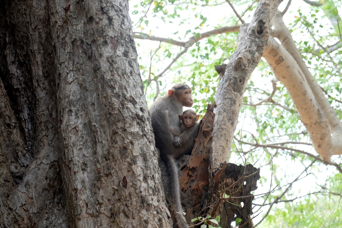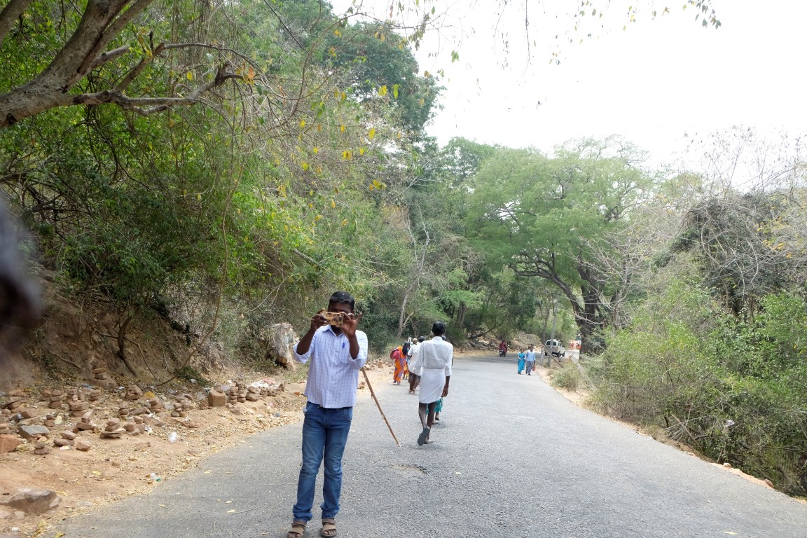 Ārā ir silti un pārvietoties mitrās drēbēs ir teju vai patīkami. Atpakaļceļā paejamies pa meža taku. Gājiens ir jauks, tikai visu laiku jāuzmanās no mērkaķiem. Kesavans joko, ka man neesot ko baidīties, jo ar mani esot kopā viens liels mērkaķis. Viņš paņem rokā mietu, ko mērkaķi respektē – nekas pat nav jādara, viņi saprot, kas tas par rīku.
