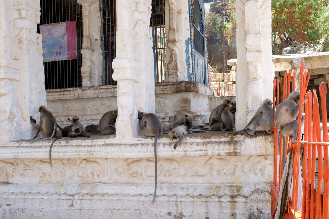 Konstatējuši, ka neesam apmeklējuši pašu centrālo templi, sākam ar to. Apsveicināmies ar tempļa ziloni, atvairām mērkaķus un tiekam pie punktiem pierē. Atrodam arī klusāku stūri un piesēžam uz brīdi. Blogā ne vienmēr iznāk pastāstīt visu notikušo, īpaši kādas nianses. Arī sarunu ar Sithardu un Tobiasu pie okeāna Pudučerī esmu minējusi vien garāmejot. Toreiz bija kāda nianse – abi džeki pārstāvēja ezoterisku dzīves pieeju, es visu dzirdēto uzreiz vētīju caur skepses sietu. Viena brīdī panesās teksts par enerģijām un es paziņoju, ka esmu nejūtīga. Šie abi gandrīz vienā balsī paziņoja, ka tas notiek tāpēc, ka es tā saku un esmu ieņēmusi šādu nostāju. Tajā brīdī pasūtīju abus dažas mājas tālāk. Pēc dažām dienām nolēmu pamēģināt sajust. Un, lai cik jocīgi nebūtu – jūtu ar. Es nemāku pamatot un izskaidrot, bet dažos tempļos kaut kas ir. Tāpēc tagad, ja vien ir iespēja, es tempļos vismaz uz dažām minūtēm cenšos nolīst kaktiņā un brīdi pajust.