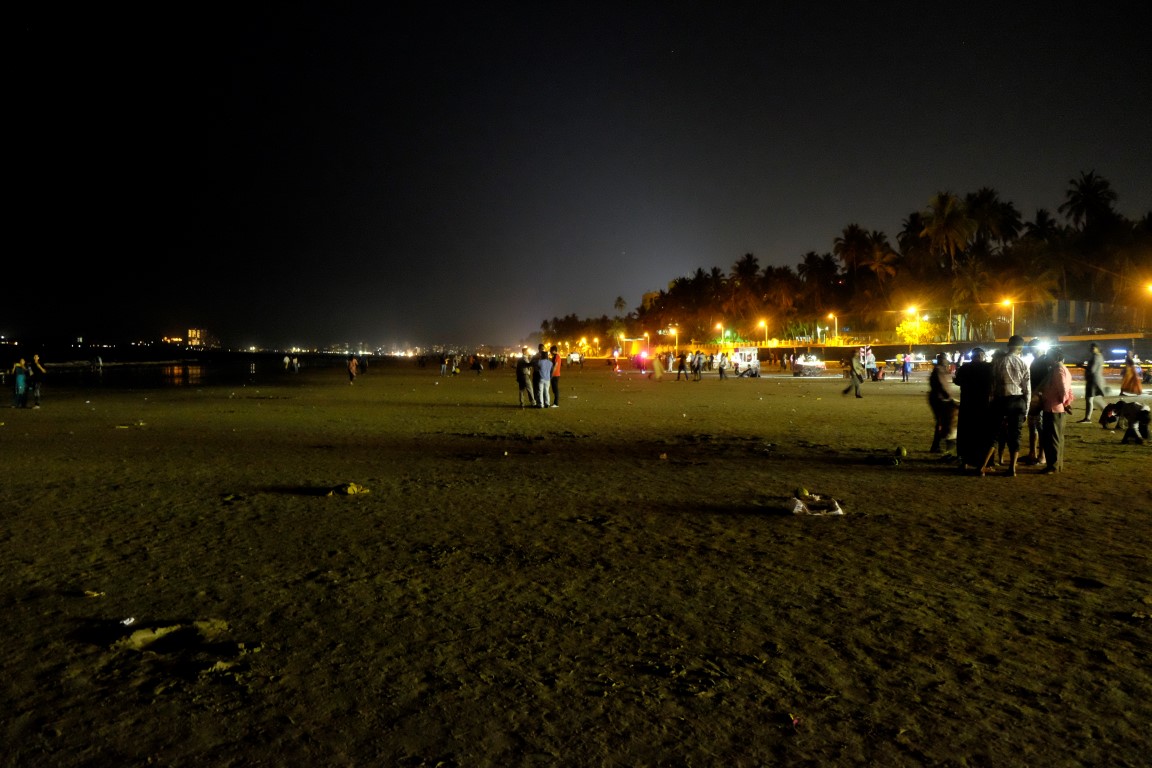 Prio vēl nav reģistrējies viesnīcā, tāpēc tālāk dodamies ar visu viņa čemodānu. To vilkt pa bedrainajām Mumbajas ielām gan nav īpaši ērti, draugi to dara uz maiņām. Drīz esam nonākuši vienā no šejienes pludmalēm. Tā ir plata, cilvēku un atkritumu pilna. Ik pēc minūtes nākas atvairīt kādu piedāvājumu kaut ko iegādāties, tāpēc drīz vien zūdam tālāk.
