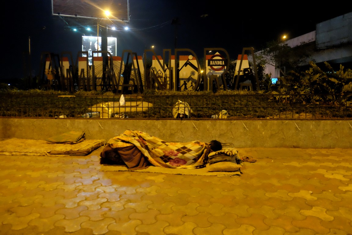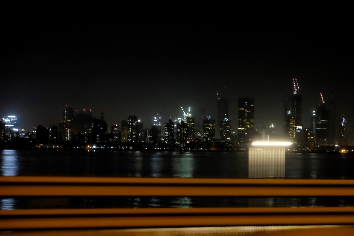 Sēžamies taksī un braucam uz rajonu, kurā atrodas Prio viesnīca. Mēs braucam pāri garam tiltam, no kuras paveras skats uz Mumbajas daudzajiem debesskrāpjiem ar dzeltenu mēness bumbu virs tiem. Braucam garām ultra modernām ēkām un krāšņiem dārziem, pēc desmit minūtēm esam blakus vēsturiskām ēkām – dzelzceļa biroja ēkai, kas iekļauta UNESCO, universitātei, Gateway arkai un citām Mumbajas īpašajām vietām. Dažas minūtes no tām – uz ielām guļoši cilvēki, būdiņas, grausti, teltis. Man galva griežas no šejienes kontrastiem. Miljonāru un bezpajumtnieku pilsēta.