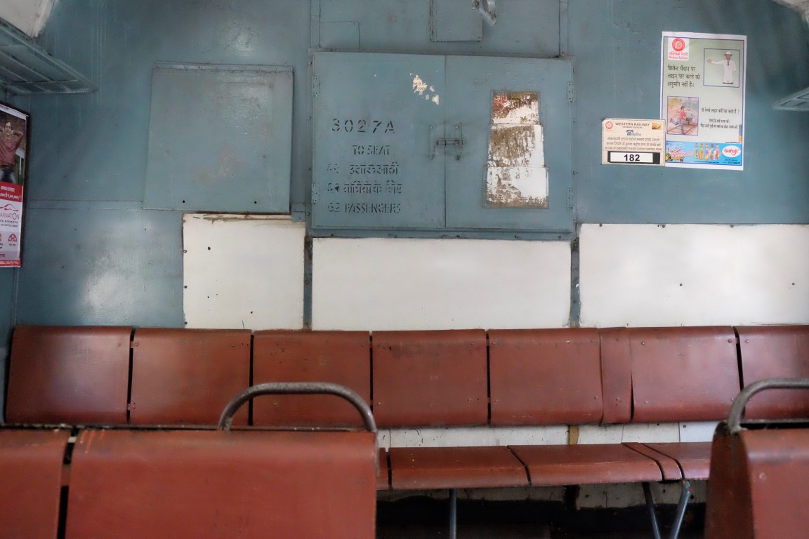 “Nu, gribi braukt uz pilsētu ar rikšu vai ar vilcienu?”, Sandžibs vaicā. Es, protams, izvēlos vilcienu. Kamēr uz perona gaidām to pienākam, apvaicājos Sandžibam, vai vilcienā ēst būtu korekti. Neesam bijuši brokastīs un man vēders kurkst, skatoties uz visādiem stacijas “belašiem”. Ēst drīkstot, bet viņš neieteiktu. Pēc brīža arī saprotu, kāpēc. Kad pienāk vilciens, pirmo reizi tieku faktiski iestumta vagonā, kājas pat nav jākustina. Tieku ienesta kaut kur tambura vidū, piespiežu pie krūtīm mugursomu, no pārējām pusēm indieši aplīp kā košļenes. Sandžibs iekāpj viens no pēdējiem un mierīgi elpo no durvīm (kas, protams, ir vaļā) nākošo svaigo gaisu, kamēr es biezoknī smoku un svīstu. Ik pa laikam viņš ar vāji maskētu smīnu paveras manā virzienā. Varu lasīt viņa domas – “gribēji, meitenīt, izbaudīt vietējo Mumbajas vilcienu, lūdzu”. Pēc pāris pieturām daļa ļaužu izkāpj un var sākt elpot, bet vēl pēc dažām pieturām tieku pat apsēsties. Atkārtot šito joku neprasās, bet vienai reizei bija interesanti.