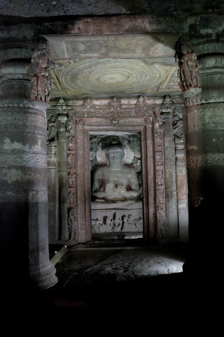Tālāk kāpju “shuttle” autobusā, jo līdz alām ir 4 km. Šeit beidzot var redzēt vairāk nekā pāris ārzemniekus kopā – alas ir iecienīts apmeklējuma objekts. Adžanta komplekss ir upes krastā, pakavveida līkumā klintī izgrebtas alas, kopskaitā 30. Daļa no tām izveidotas 2. gadsimtā p.m.ē., kā arī šīs ēras pirmajā gadsimtā. Otrais grebšanas vilnis bijis 5. un 6. gadsimtā. Alas ir slavenas dēļ to īpatnās atrašanās vietas, skulptūrām un grebumiem, bet visvairāk – sienu zīmējumiem. Uz šejieni plūst gan vietējie, gan ārvalstu tūristi, var redzēt arī mūkus klīstam, kas atbraukuši Budu lūkoties. Viens no viņiem, mūks no Jangonas, ziņkārīgi vēršas pie manis, kad bildēju paldies Gunitai Aizstrautai. Gunita man sūtīja marta puķes, kuras nebija sanācis agrāk saņemt. Uz manu e-pastu, ka sāku justies neērti, ka mani atbalsta vairākkārtīgi, Gunita atbildēja – ja esot neērti, jānopērk platākas bikses. Jāteic, ka ja vēl ilgāk uzkavēšos Indijā un turpināšu rīt šejienes mīklas izstrādājumus, šis joks varētu pārtapt dzīves īstenībā. Īsāk sakot – lielais paldies, Gunita!
