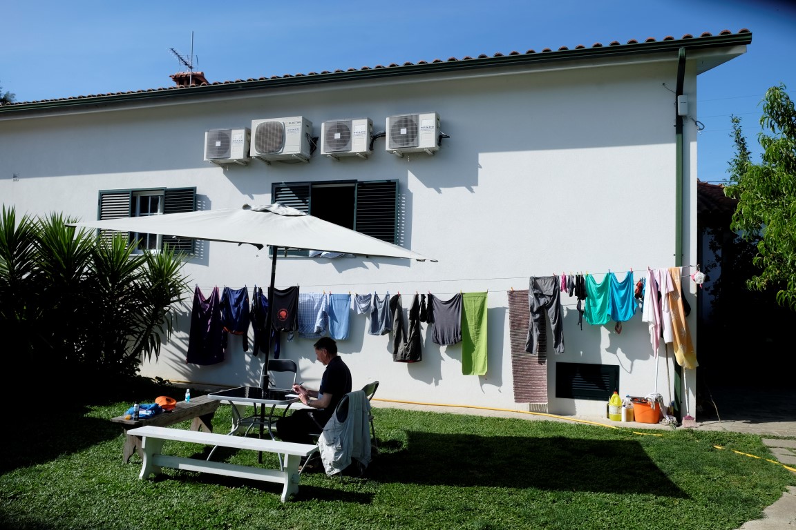 Šeit izskatās tik ļoti mājīgi un mierīgi. Vieta nav oficiālā ceļa auberģe, bet saimnieces laipnība krietni pārspēj visu līdz šim pieredzēto. Nolienu klusā dārza stūrī, lai jogotu. Man pievienojos ziņkārības pilni dukši, skaitā trīs. Lien klēpī, grib nest prom ūdens pudeli, kaujas savā starpā. Beidzot es viņiem apnīku, un šie aizskrien draiskoties uz citu dārza galu.