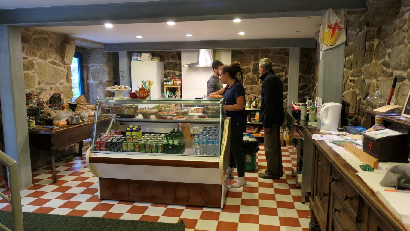 Nākamajā atpūtas pauzē piestājam pie veikala – nopērkam našķus ceļam un šo to vakariņām, ja nu nebūs ko ēst. Portugālē, atšķirībā no Spānijas, veikali nav gluži uz katra stūra. Tā kā jau iestājas pēcpusdiena, sazvanām nākamo auberģi, ko vada kanādiešu kungs un piesakām divas gultas.