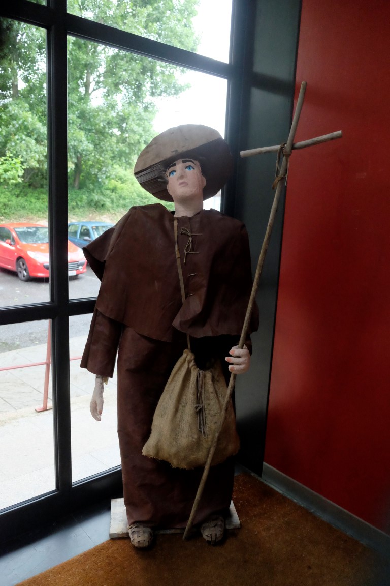 Centrā atrodam municipālo auberģi, kurā vēl ir astoņas brīvas vietas. Iekārtojamies un dodamies vakariņās. Šovakar mēs nevarētu gatavot pat, ja gribētu – šajā virtuvē vispār nav neviena katla vai trauka. Pasūtām vietējā krogā piligrimu menu. Porcijas ir varenas, daļu vistas un divus kūkas gabalus paņemam līdzi, būs rītdien ar ko stiprināties ceļā.