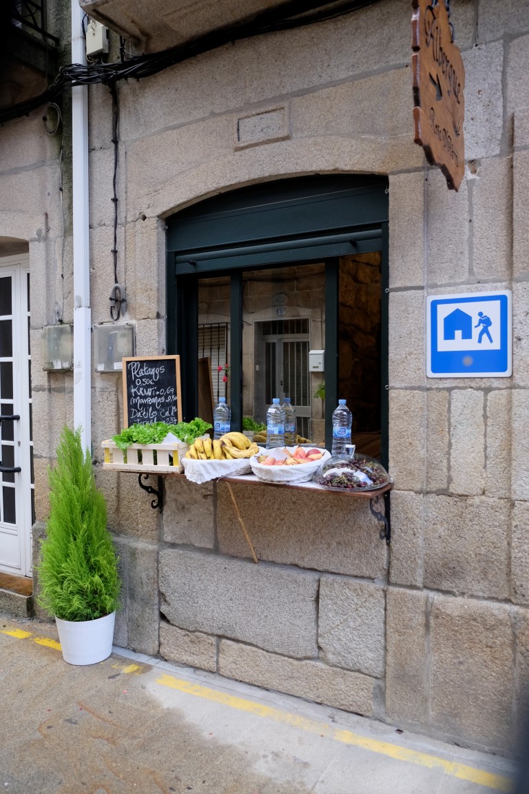 Brienam pa šosejas malu un mani sāk mākt aizdomas, ka ar savu koncentrēšanos uz benzīntanku, esam palaidušas garām mūsu pagriezienu – parasti Camino tik ilgi gar šosejas malām neved un arī bultas nekur nemana. Aši noorientējamies maps.me un secinām, ka pēc laiciņa noteikti satiksim pareizo maršrutu, atpakaļ galīgi negribas iet. “Tagad mēs pašas esam lielceļa komanda,” secinām un turpinām ceļu. Uz mirkli izdodas nonākt klusākā ielā, kur neliela bāra priekšā mūs noķer pamatīga lietusgāze. Dažreiz man šķiet, ka lietus ir šejienes bāru mārketinga triks. Kolīdz parādās kāds bārs, parasti sāk līt stiprāk. Iesprūkam uz kārtīgu kafiju. Tā kā šis krodziņš nav uz Ceļa, kafija šeit ir mazdrusku lētāka un nāk komplektā ar sulas šotiņu un keksu. Spānijā uz ceļa kafija visbiežāk maksā 1,50 eur, retumis 1,20 eur. Portugālē tasītes cena parasti bija no 0,80 līdz 1 eur.