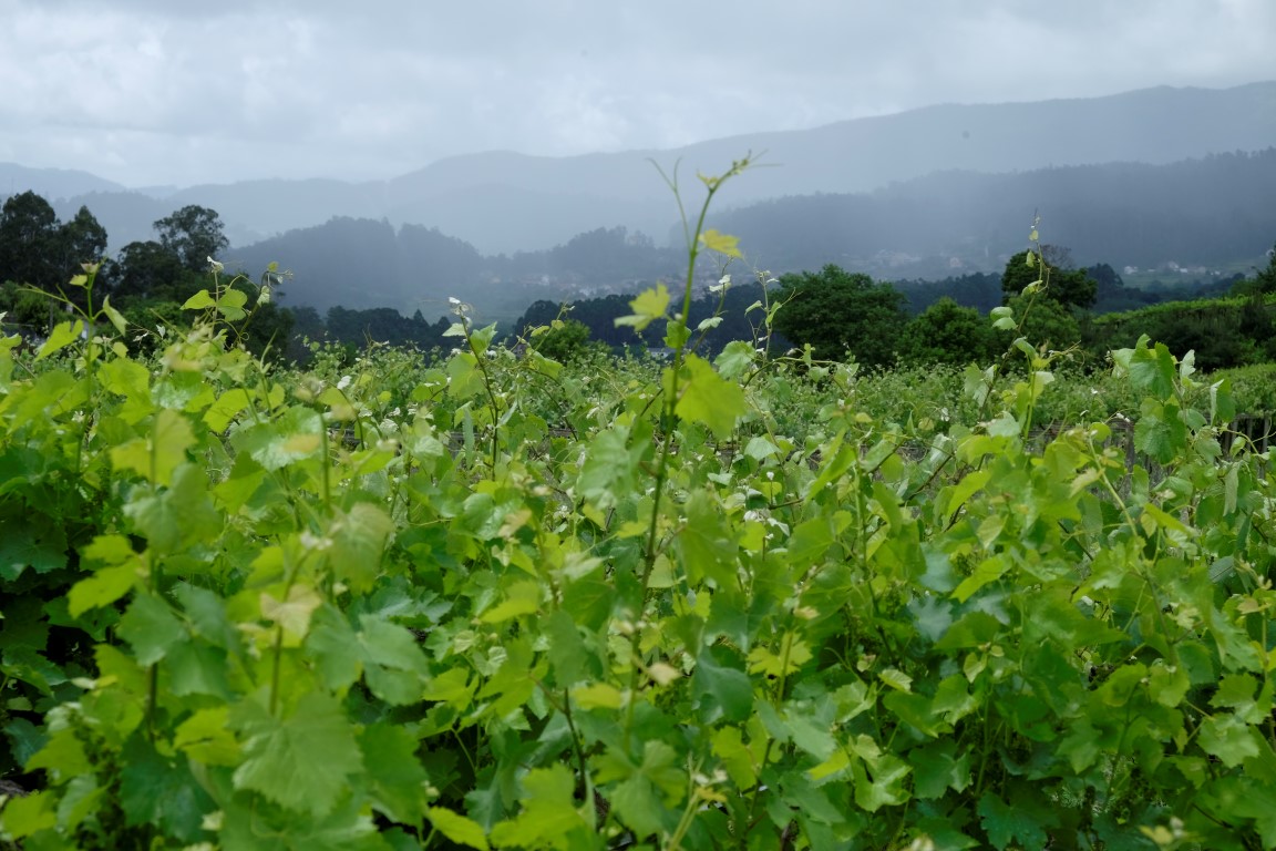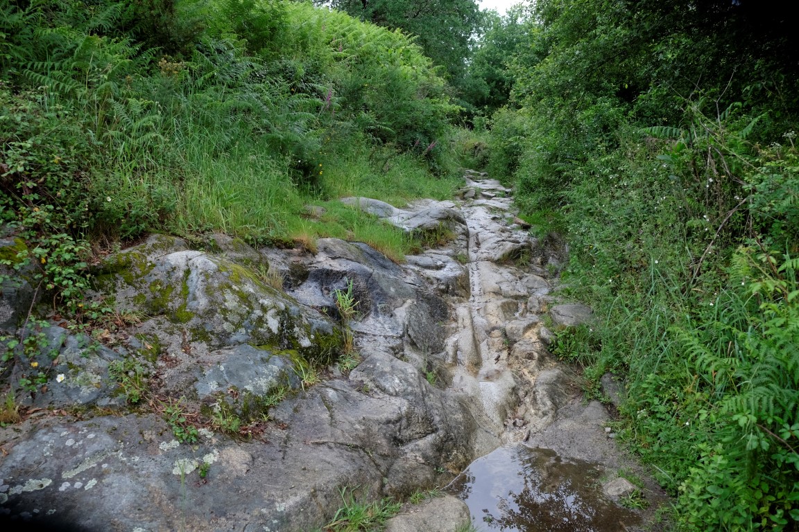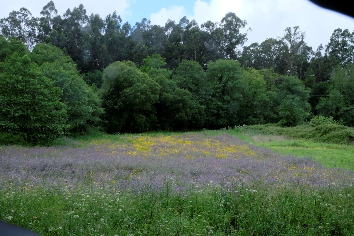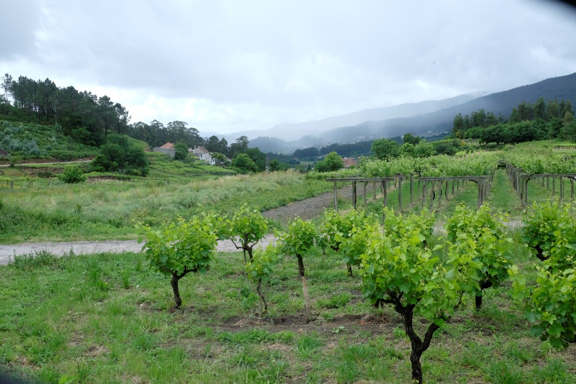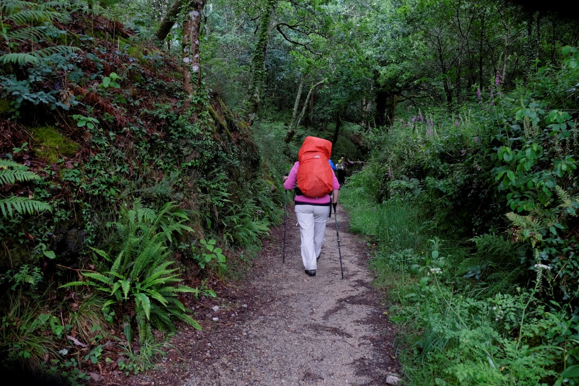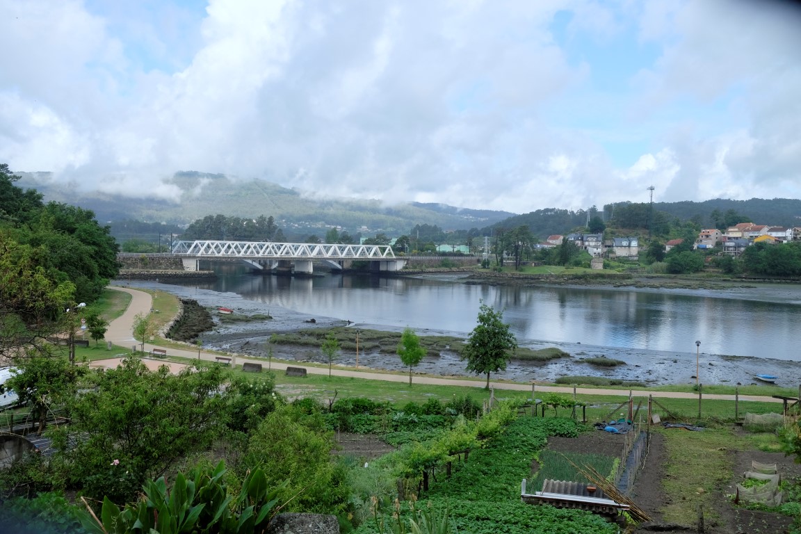 Pēc kafijas pauzes laiks mazu brītiņu mūs saudzē, tad atkal no gaisa sāk krist slapjums. Plānotajā vietā šoseju šķērso Camino, esam atpakaļ pie bultām. Arī autobusa pieturām piemīt līdzīga spēja kā bāriem, to tuvumā sāk līt stiprāk. Apsēžamies vienā no tām un domājam, ko darīt. Apkārt viss ir apmācies, debesīs nav ne mazāko cerību. Esam tuvu domai par autobusu līdz šodienas galamērķim Pontevedrai. Petra aizsūta mājiniekiem nelielu videosveicienu, kā mēs izklaidējamies autobusa pieturā. Pašas smejamies – ja kāds prasīs, kur mēs pavadījām atvaļinājumu, varēsim atbildēt, ka pamatā autobusa pieturās.