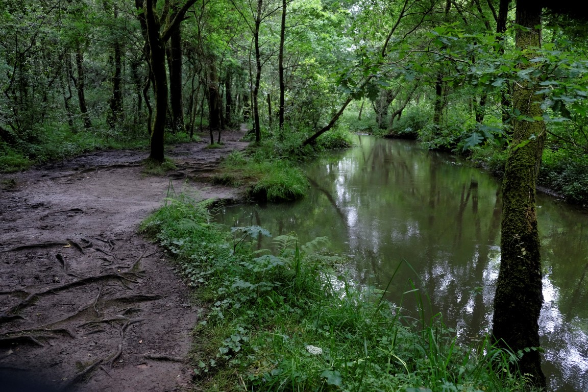 Kolīdz lietus piestāj, pieveicam pēdējo posmu. Tas ir gana amizants – jāiet cauri akmens arkai pa nelielu koka taku, kas turpinās virs upes, gar akmens mūriem. Skaisti.