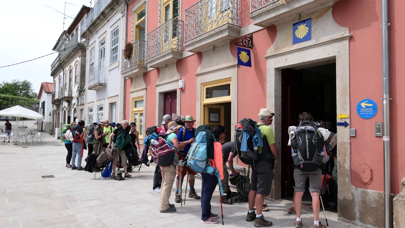 Naktsmītnes. Lielākajās pilsētās ir municipālās auberģes, kas Portugālē maksā 5 eiro par nakti, Spānijā – 6 eiro. Privātas auberģes, kurās apstākļi ir drusku labāki, parasti maksā no 10 līdz 15 eiro, ja ēdināšana ir iekļauta, tad nedaudz dārgāk. Mūsu jaukākās pieredzes, kā reizi, bija tieši privātajās auberģēs, bet nejaukākā – Pontevedrā, kur tikām blakšu sakostas.
