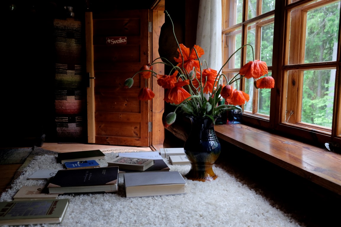 Biju paķērusi līdzi savu kaučsērferi no Ukrainas – lai cilvēks apskatās vietu un tad brauc uz Rīgu. Kādā brīdī šis pazūd. Nu skaidrs, uz Rīgu aizbraucis. Pēc pāris stundām tomēr atkal viņu satieku, tādu lielām un sajūsmas pilnām acīm. Esot uzkāpis trešajā stāvā, piesēdis vienā istabiņā, un viņam sākuši uz galvas gāzties dzejoļi, stāsti, atklāsmes. Esot paspējis pierakstīt kādu desmito daļu. Paskaidroju ciemiņam, ka viņš neviļus bija iemitinājies Ziedoņa darbistabā, kur acīmredzot joprojām jūtama Lielā Elpa.