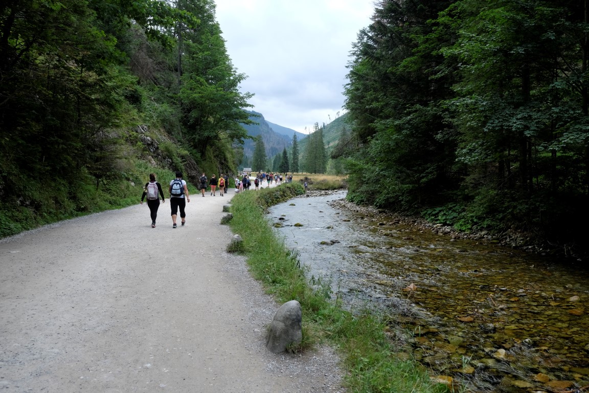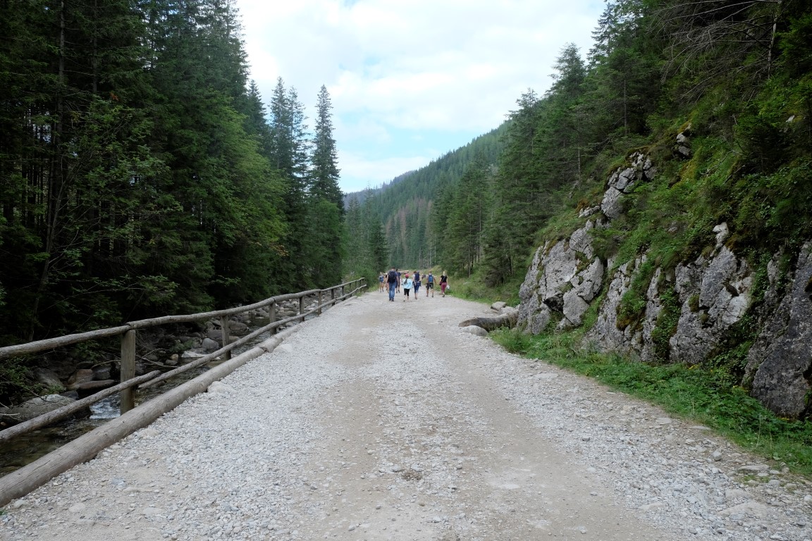 Gribējās piecelties agri, sanāca – kā parasti. Jāuztapina ieraksts, jāsadzejo brokastis, jāpadzer kafija, tad vēl viena kafija… Rezultātā pie takas sākuma punkta esam ap 11. Šodien esam iecerējuši iet relatīvi vieglu (lasi – līdzenu) maršrutu. Atstājam mašīnu Kiry (par stāvvietu jāmaksā 10 zloti, bet var auto atstāt arī netālos krūmos bez maksas) un dodamies uz priekšu Koscieliska ielejā. Pie ieejas mums atņem 5 zlotus no deguna.