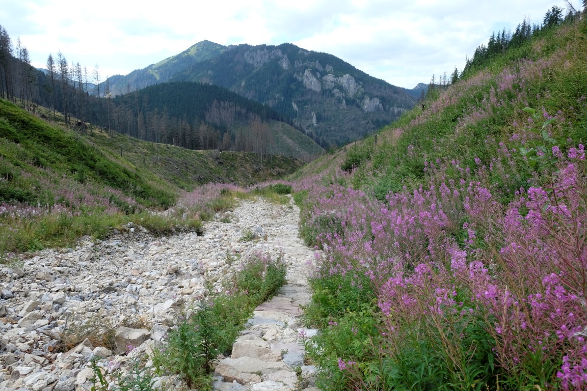 Beidzot klāt ir meža pļava – šodienas pārgājiena augstākais punkts. Piesēžam uz riekstu un burkānu pauzi, tad var sākt cilpot lejā. Cita iešana! Ar visu bildēšanu un aveņu ēšanu pēc stundiņas esam kaimiņu – Chocholowska ielejā. Tur atkal ir cilvēku “šoseja”. Slinkos un nogurušos līdz civilizācijai par 5 zlotiem aizved traktorvilcieniņš. Mēs noslēdzam dienu soļojot – sanāk tāda 20 kilometru pastaiga.